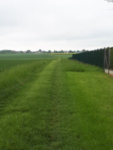 Zo kort gras stapt het best! Geen slijk aan de zolen. Door die regen vanacht is het beruchte slijklaagje weer beschikbaar. De weg liep ook doorheen typische dorpjes met oude hoeven. De ene al wat beter onderhouden dan de andere.