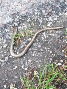 De regen van voorbije nacht liet heel wat dieren terug te voorschijn komen. Oa deze culinaire specialiteit. Ik had gerust een dozijntje kunnen verzamelen.