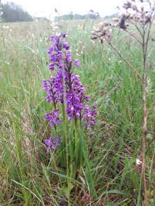 Het zijn wilde orchideetjes. Die vind je wel op kalkrijke grond en nu staan ze in bloei. Mooi.