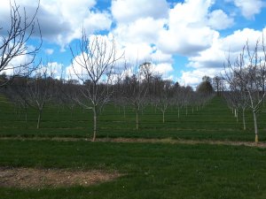 Zoals gezegd is dit ook de streek van okkernoten. Veel aangeplante stroken gezien van die laat bloeiende bomen. Ze staan er nog heel winters bij.