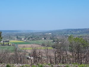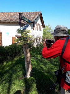 Het landschap was golvend en open, maar de wandeling had vandaag toch 2 flinke daal-en klauterpartijen in peto. Rond 11u30 was ik even gestopt om de eerste van mijn kledinglaagjes uit te spelen of ik ontmoette een stapper, een Fransman die lokaal aan het oefenen was om later de echte Camino te stappen.