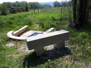 Een plezier voor een pelgrim onderweg is een zitbank. Hier degene die ik deze middag ontmoette om te lunchen, daarachter een lavoir.
