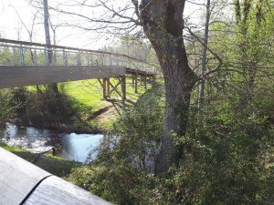 De tocht ging terug naar de rivier L’isle. Dus terug naar beneden en daarna terug naar boven. De hoogste top achter de rug kwam de Camino op een plateau terecht. Gewoon prachtig. Een soort heidelandschap met sparren en heideplanten. En wat een heerlijke geuren. Heel stil ook.