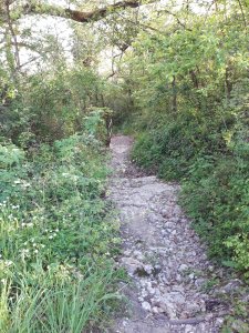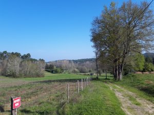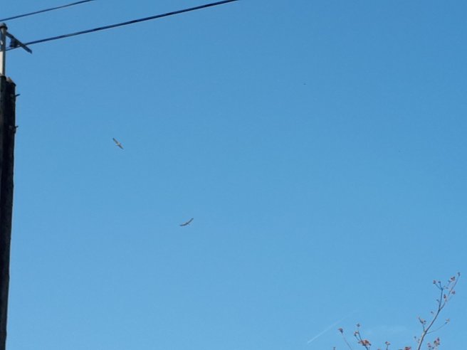 In de buurt van Fraisses na 10 km stappen hoorde en zag ik roofvogels. De foto is niet zo duidelijk, maar ik vermoed dat het havikken waren.