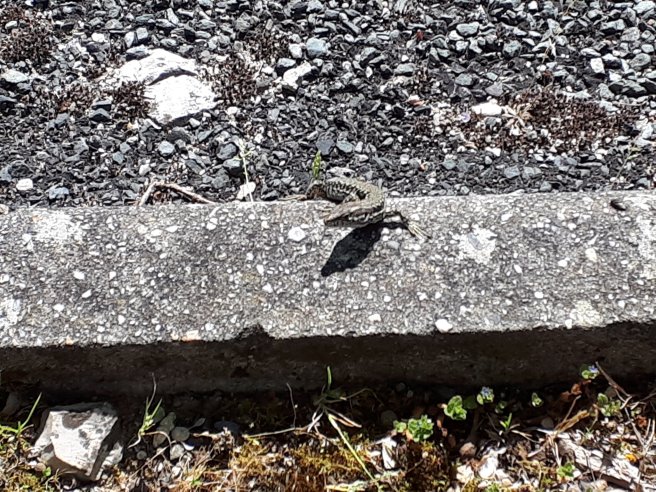 Regelmatig hoorde ik verschillende keren reeds iets wegschieten in de graskant. Muisjes? Nee hoor, hagedisjes zoals dit hierboven.