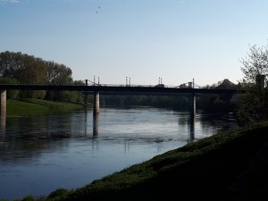 En daar was dan de Dordogne. Brede rivier waar het water vrij stevig onder de bruggen door stroomt.