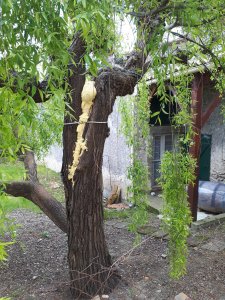 Nog een beeld van gisteren of hoe men hier bomen restaureert. Polyurethaan schuim inspuiten.