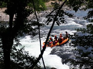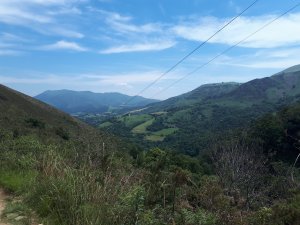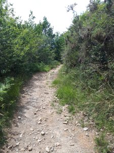 Het werd een stevige wandeling vandaag op de Camino Bidasoa. De klim mocht er zijn. Maar laat me beginnen bij het begin.De tocht startte met het oversteken van de rivier de Nive via de “devilsbridge”, een oude stenen voetgangersbrug.Gezien het zondag was ging ik nog even langs bij de artisanale bakker, die ik de avond vooraf gespot had, om lokale lekkernijen als mondvoorraad mee te nemen. Een mens moet toch de lokale gastronomie leren kennen, niet? En op zondag moet je er van uit gaan in Frankrijk dat de winkels vaak gesloten zijn. De ervaring leert dat snel tijdens de wandeltocht.De voormiddag liep de tocht langs de rivier. Het voordeel is dat een groot deel van de tocht onder overhangende bomen liep. Handig als het warm is.Voor de gieren in de streek verliep de dag zoals gisteren. Dus in de voormiddag zag ik ze vrij goed, na de middag enkel als kleine stipjes hoog in de lucht.De wandeling verliet de rivier om hier en daar een kabbelend beekje over te steken. Wat verderop liep de weg terug naar de rivier. Daar waren jonge lui aan het raften. Prima weer om te raften. Lekker fris op de rivier.Wat verderop was een taverne waar een broodje ham kaas lekker smaakte en veel water het verloren zweet kon aanvullen. Want zweten, dus drinken blijft de boodschap. Maar goed ook dat de krachten konden opgedaan worden, want ze waren nodig in de namiddag. Een bergpas moest overgestoken worden.Een kilometerslang pad klom maar hoger en hoger. Snel ging het niet. Bij elke boom stopte ik even om mijn tikker wat te sparen en wat af te koelen uit de zon. In het nieuws werd gemeld dat hartpatiënten inspanningen moeten vermijden bij warm weer. Maar ik kon moeilijk blijven wachten tot het donker werd. Dus rustig verder klimmen en af en toe stoppen en kijken naar het landschap.