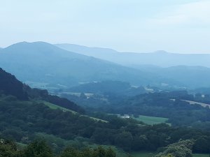 Dit beeld doet me denken aan de tekeningen in de krant Het Volkske over de tour de france. De bergen met rond hun top een wolkenband.