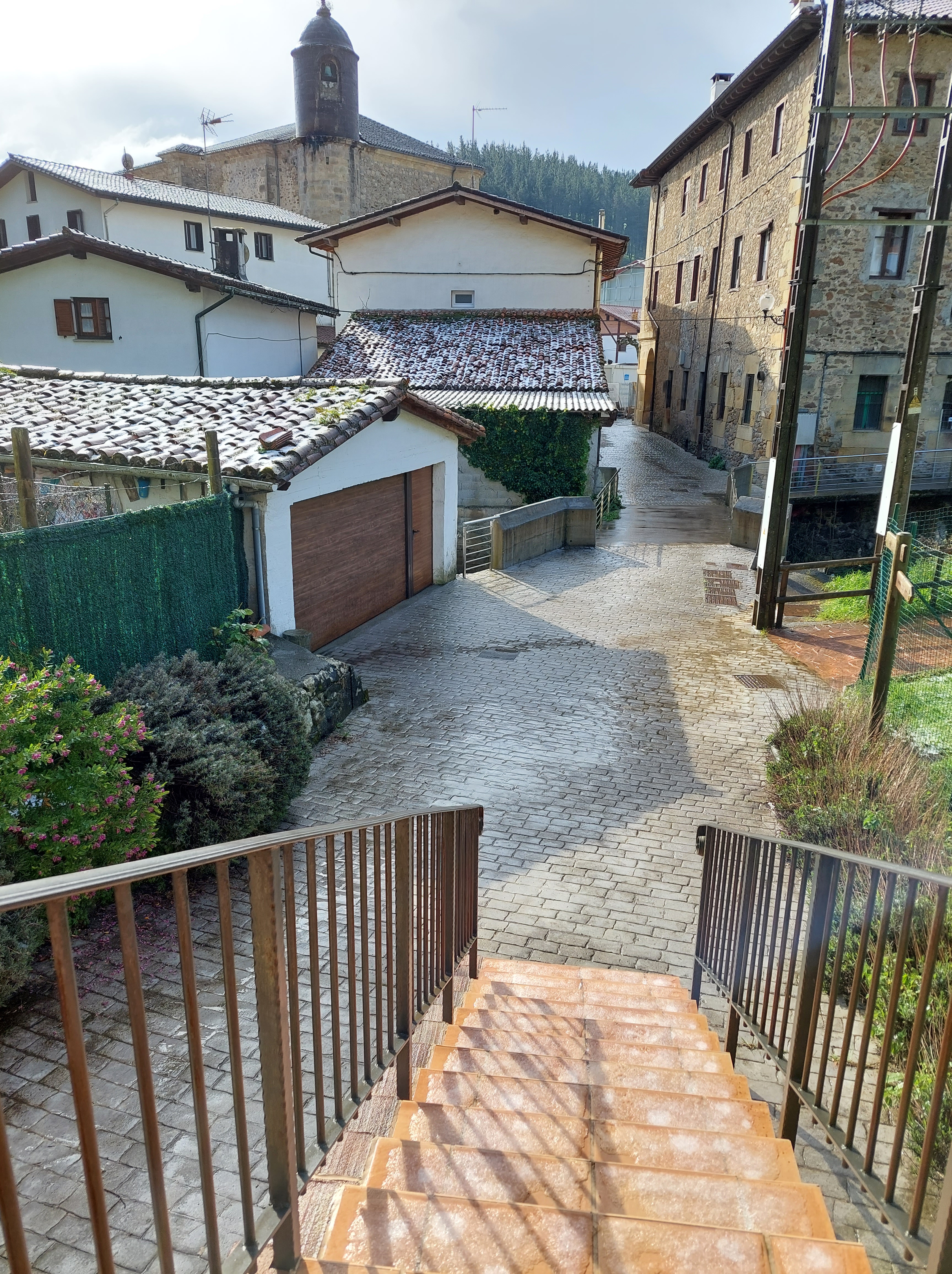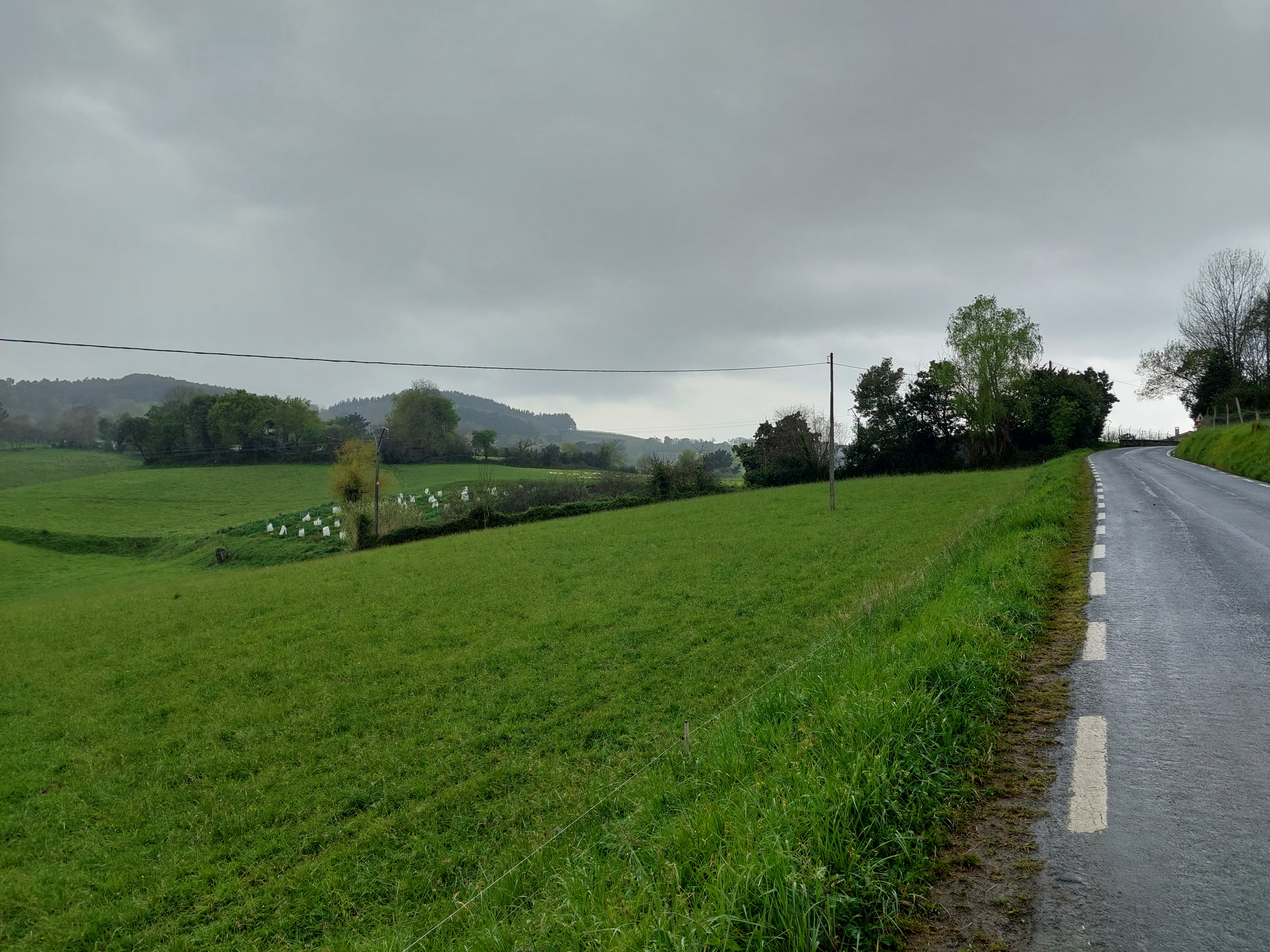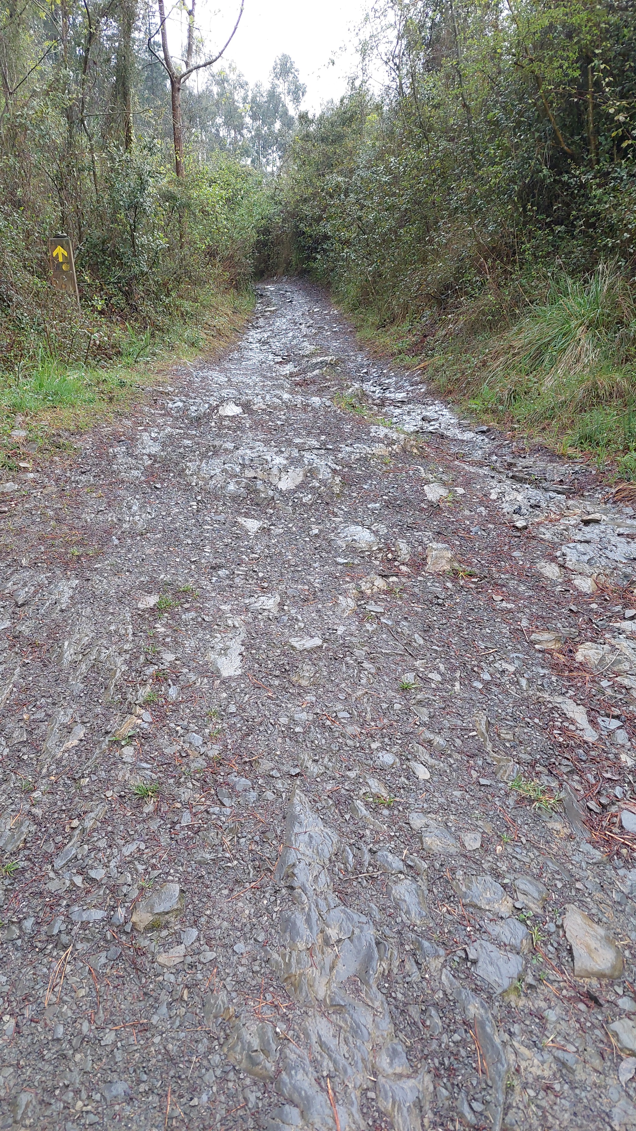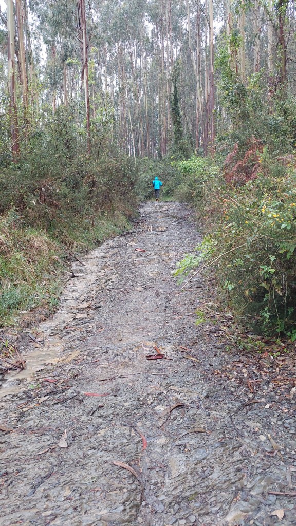 Dus met goede moed vertrokken na het ontbijt, waar de uitbaatster me nog snel een hap mee gaf voor onderweg. De weg ligt nat en het wordt weer wat zoeken hoe de schoenen het doen op natte stenen. Ik heb echt geen zin om te vallen. Meteen de proef op de som bij het verlaten van Deba.