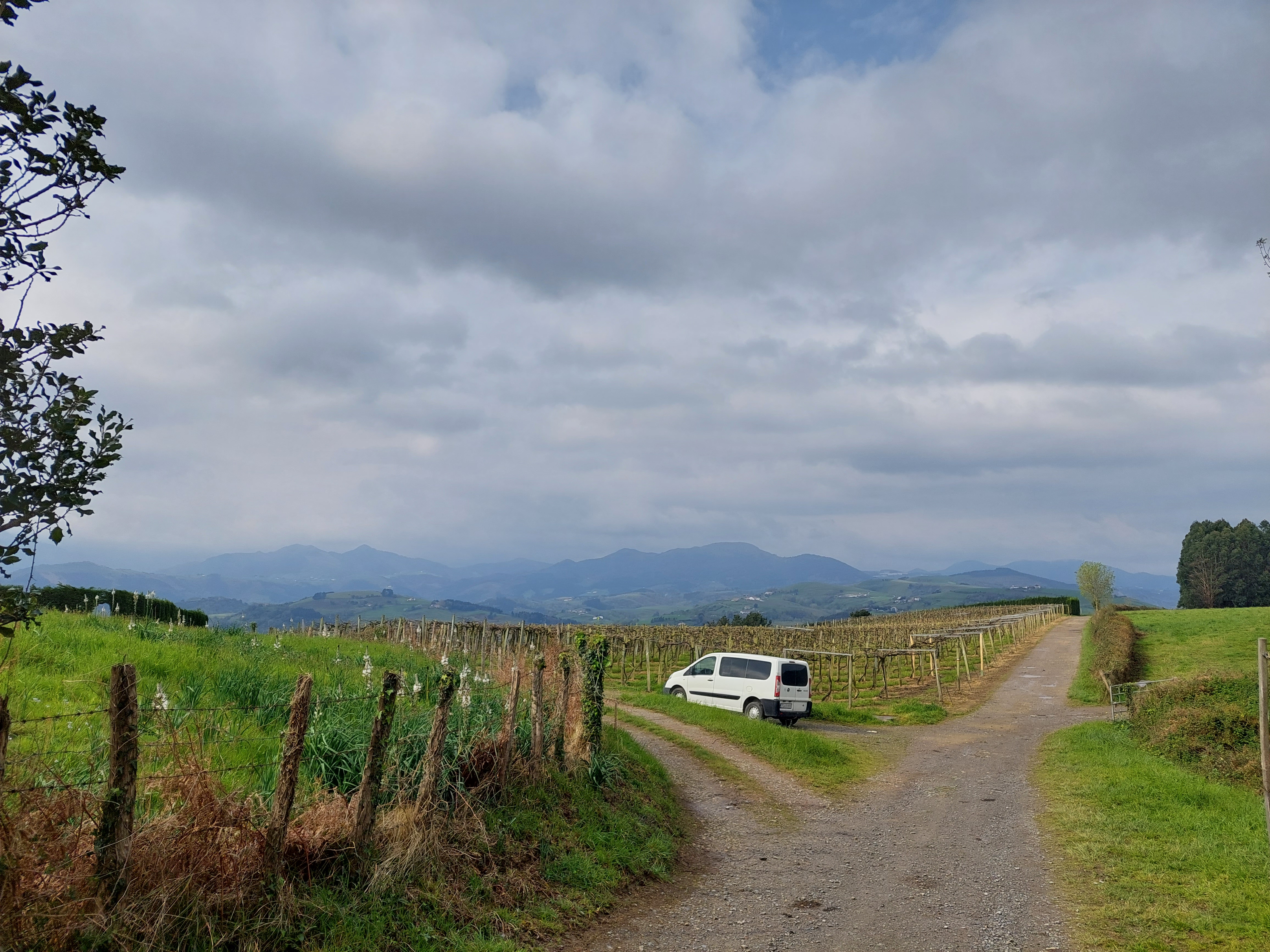 Door die regen stap je wel door een groen en fris landschap. De natuur is overweldigend met weiden, akkertjes en wijngaarden die elkaar afwisselen. De vergezichten leiden wat onder de regen.