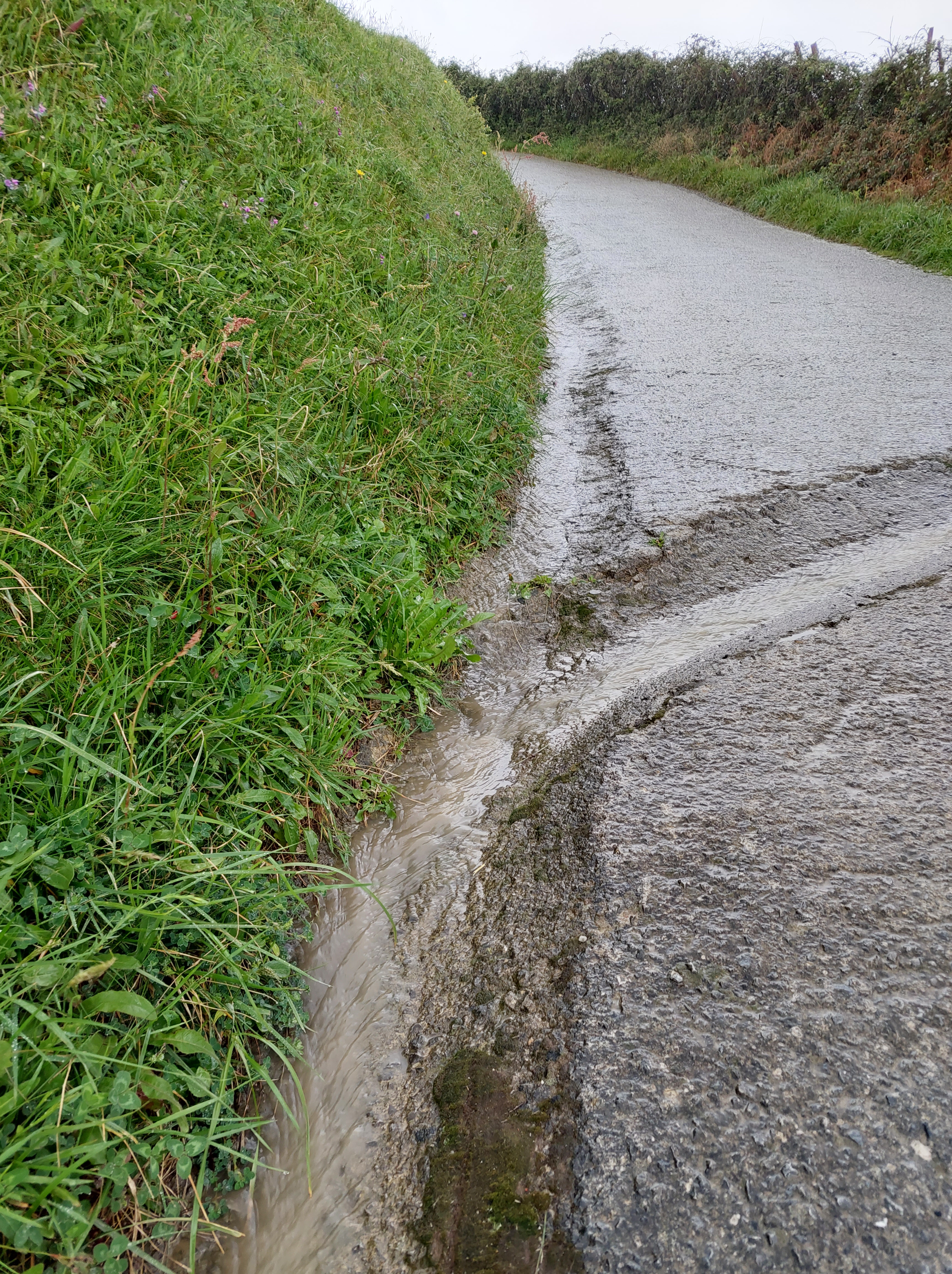 Boven gaat de weg over in asfalt, maar de lucht wordt grijzer en de regen intenser. Ook is het amper 10 graden en met de natte broekspijpen wordt dit frisjes. Wanneer het morgen nog frisser wordt zijn lange onderbroek en regenbroek geen overbodige luxe denk ik.