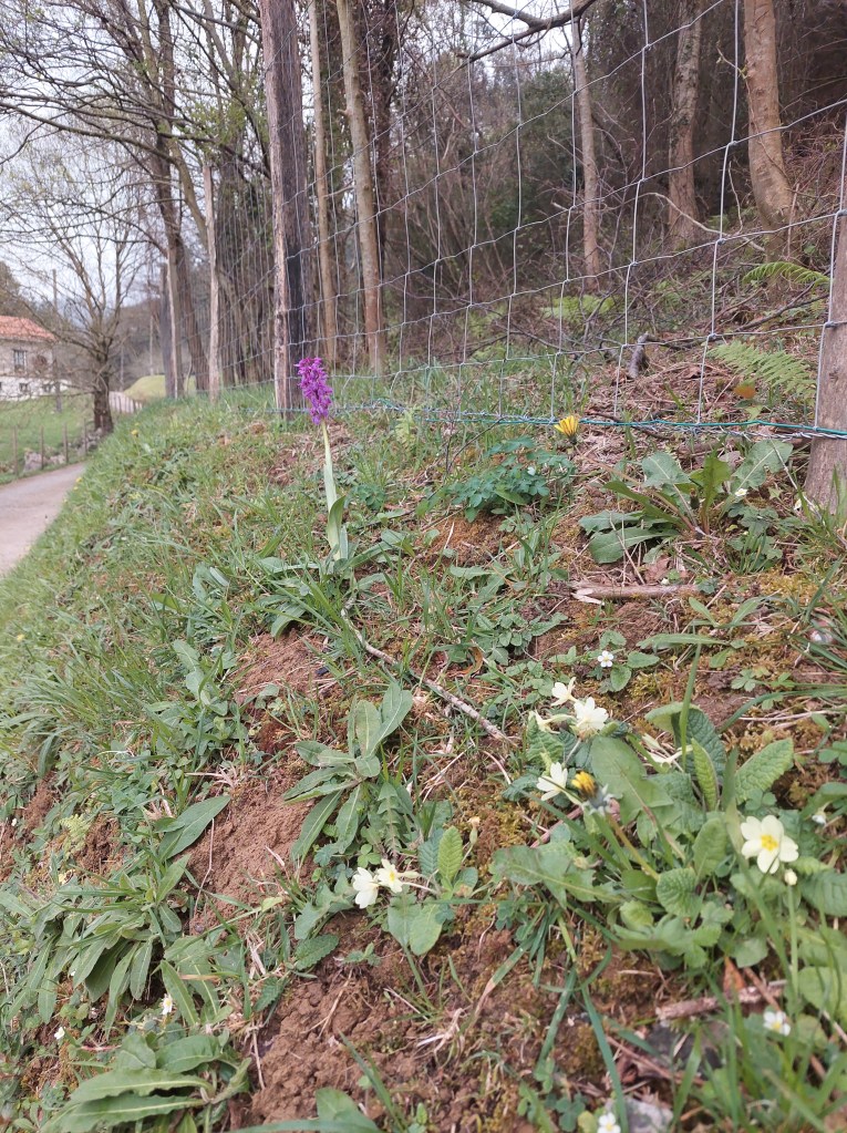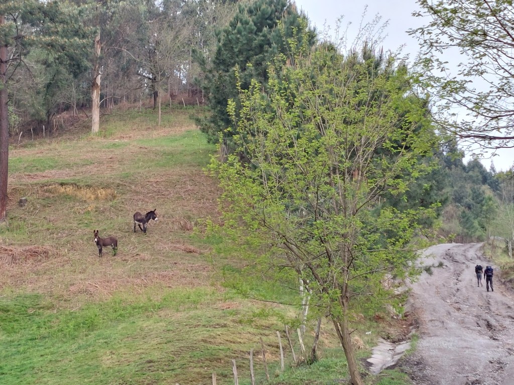 Weer ging de Camino omhoog, nat en fris. Zoals ik al schreef is de natuur hier al verder in de lente, maar de hoogte en de koude maakt het niet altijd gemakkelijk voor flora en fauna denk ik.