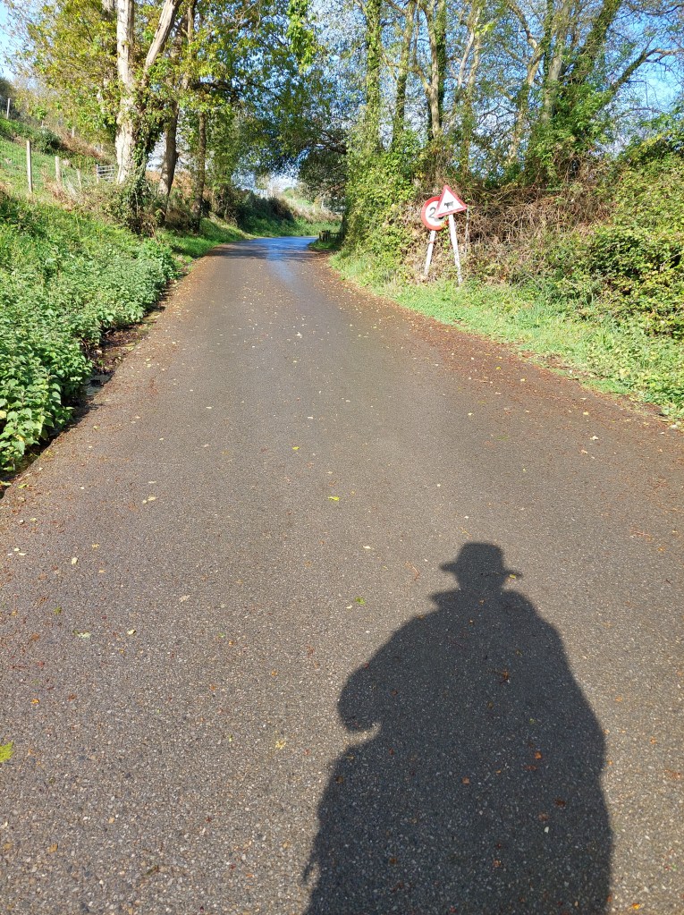 De dag bood eigenlijk niet veel spectaculairs meer. Voetpaden en wat verderop landwegen. Het begin grijzer en grijzer te worden en de druppels kwamen naar beneden. Rinkel deze schattige Jacobus gezien.