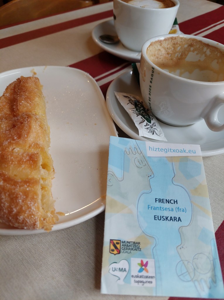 Dat is toch wat ik opmaakte uit zijn uiteenzetting in het Spaans, Frans en Baskisch. Ook nog een hele uitleg over het feit dat Franco vorige eeuw dat Baskisch verbood, maar dat het nu de officiële taal is en nog een woordenboekje gekregen ook.
