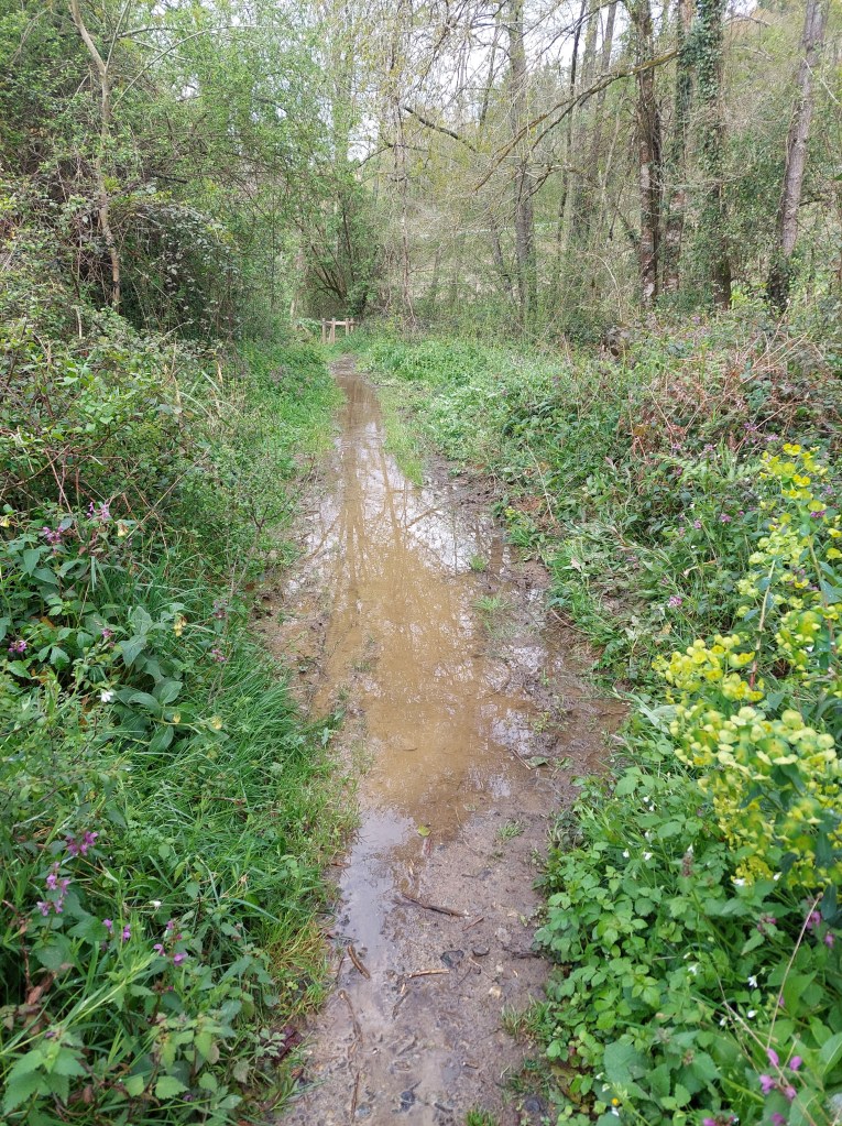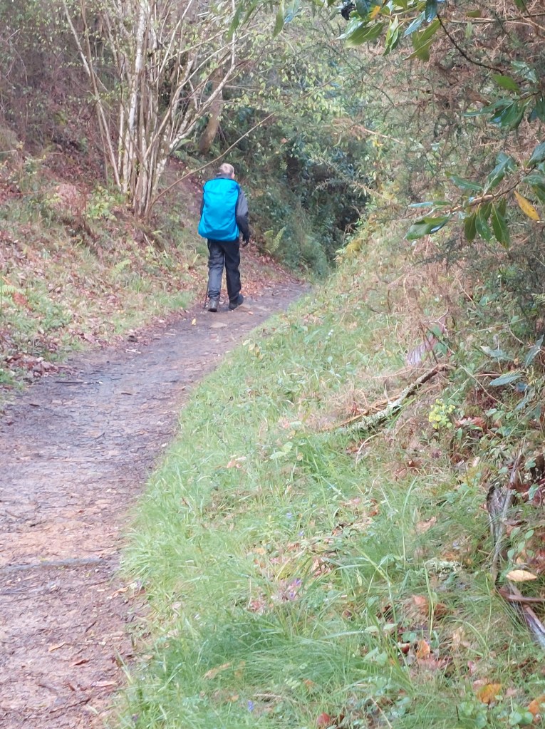 Een regenwandeling met glibberige stukken vandaag. Regenhoed en regencape uitgehaald want deze morgen startte met fijne regen en de verwachting was dat er buien kwamen.