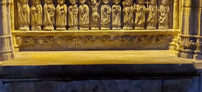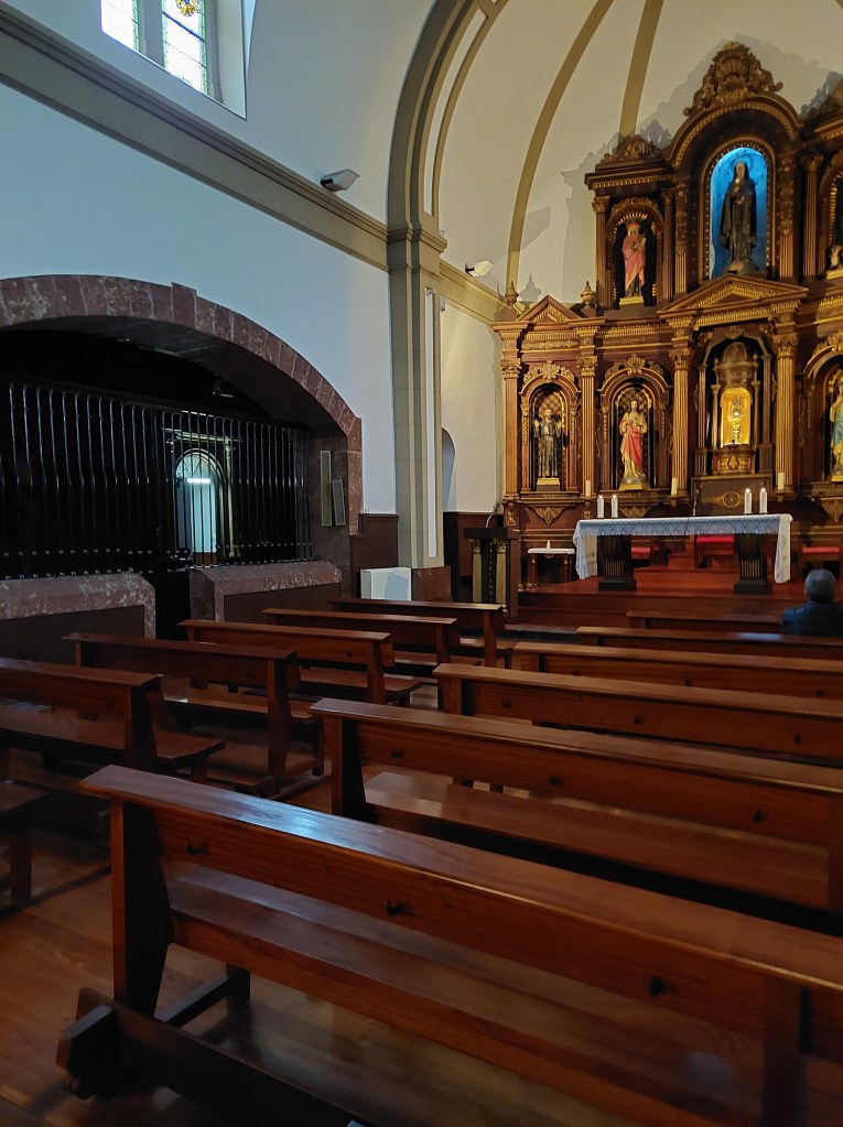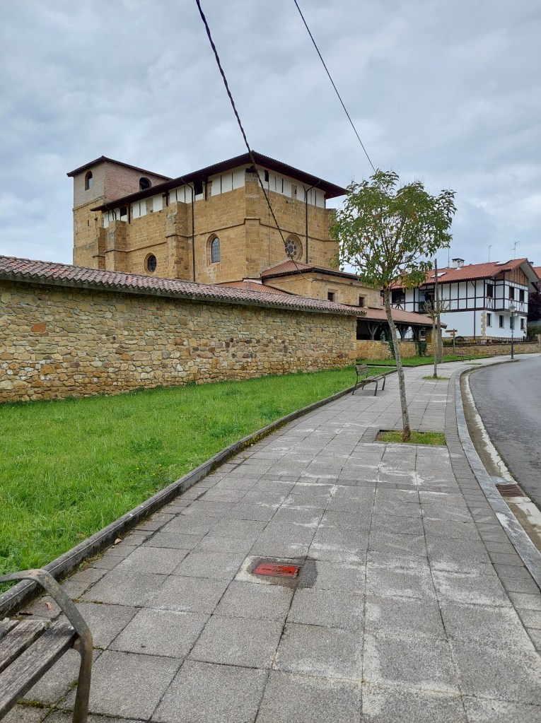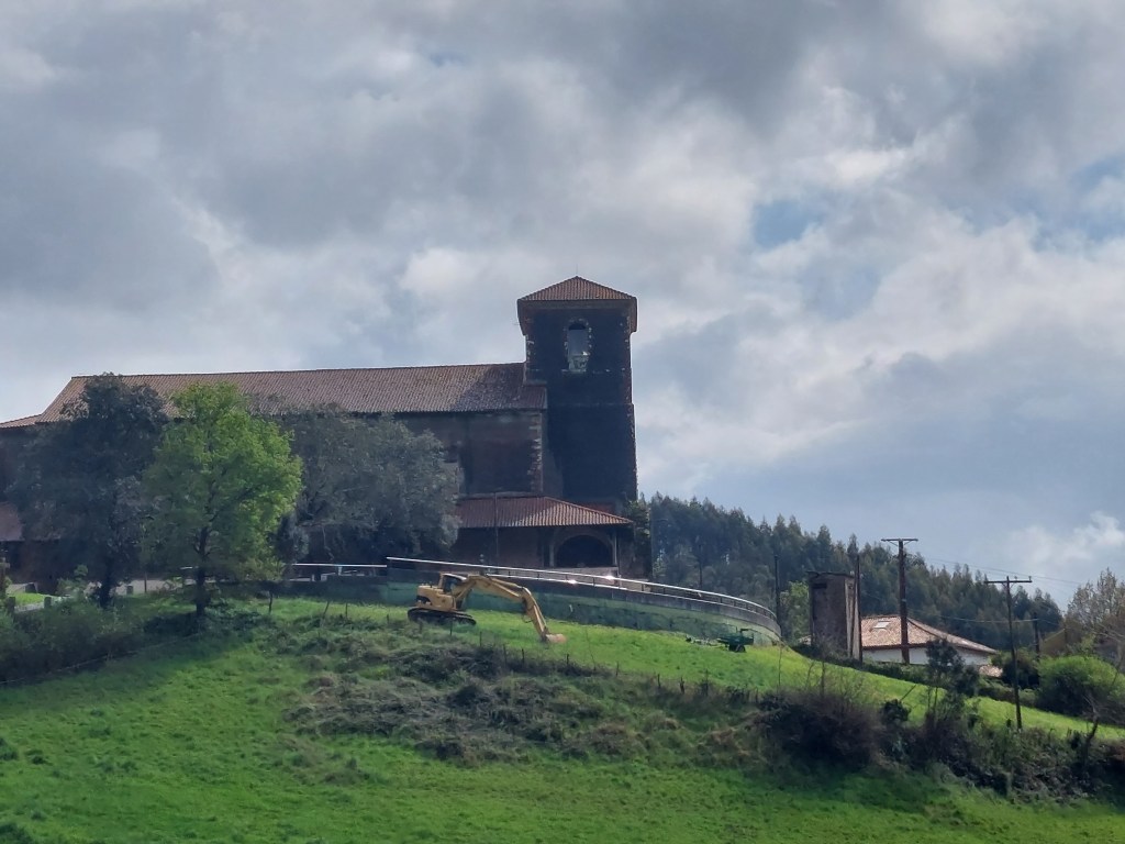 Eerste halte van de dag, klooster van Zenarruza . Gigantische gebouwen. Even de grote kerk binnengestapt waar uit het donker een oude broeder opdook. Die was zo blij eindelijk pelgrims te zien dat hij me met open armen ontving. Hij omarmde me letterlijk van blijdschap en welkom. Een gebaar dat Corona volledig weggeveegd heeft de voorbije 2 jaar. Ik betrapte me erop dat ik het heel ongemakkelijk had met de nabijheid van die broeder. Het zal nog even duren eer we daar van af zijn….