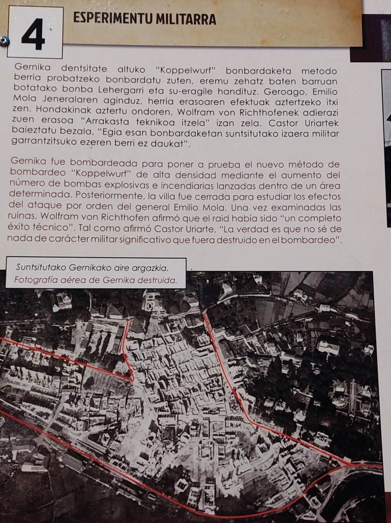 Afscheid nemen van Gernika met dit beeldje dat aan de grens van de stad uitwuift. Dan gaat de tocht terug de heuvels in.