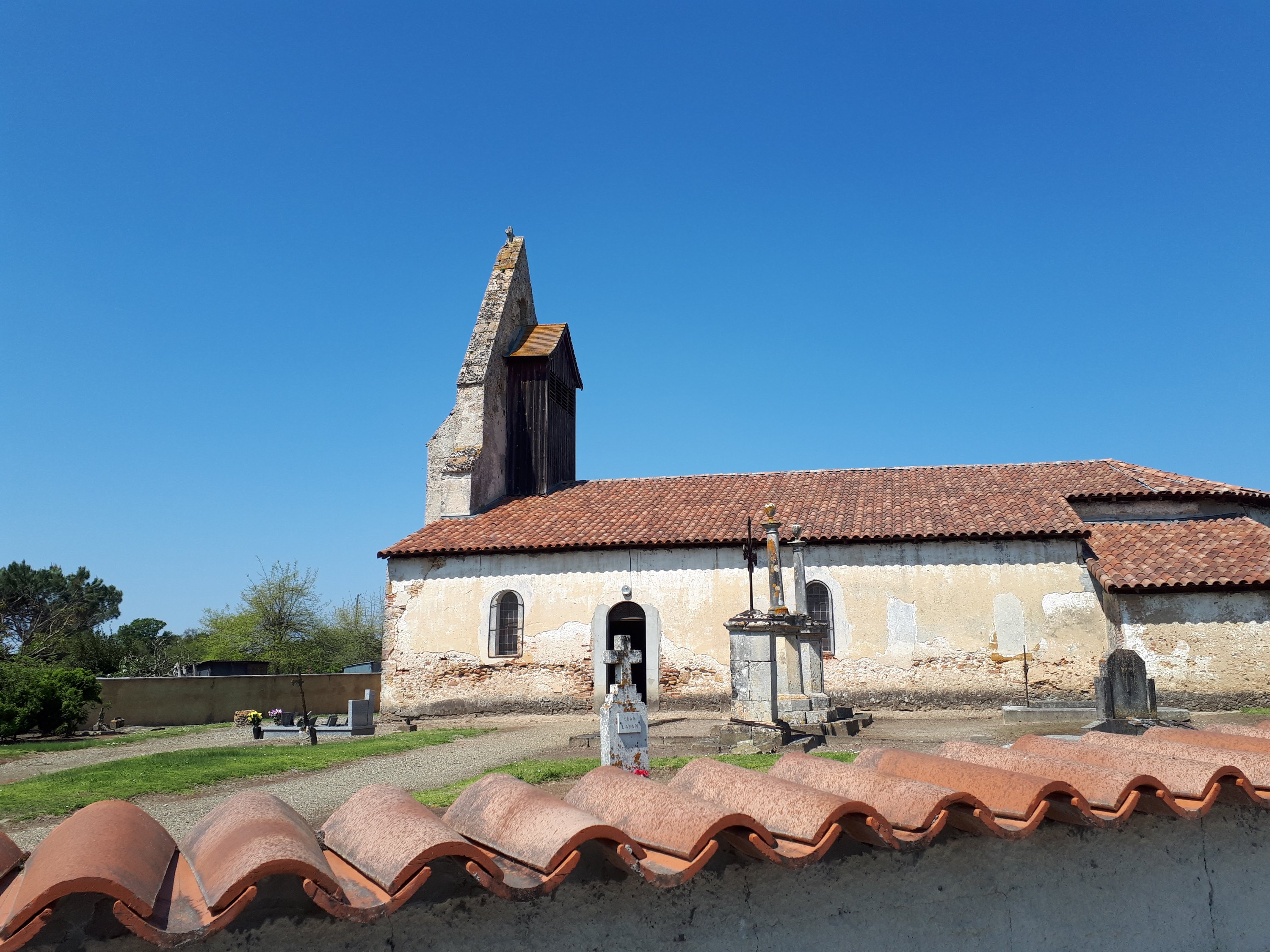 De tocht door de Landes loopt op zijn einde, het landschap wijzigt. Het wordt glooiender en groener, natter. In zo’n groene vallei naast de weg vond ik de resten van een middeleeuwse kerk en kerkhof. Goed dat er een bord stond want buiten een paar 16de eeuwse grafstenen zag je niet veel meer van La Bastide de Pont la Reine.