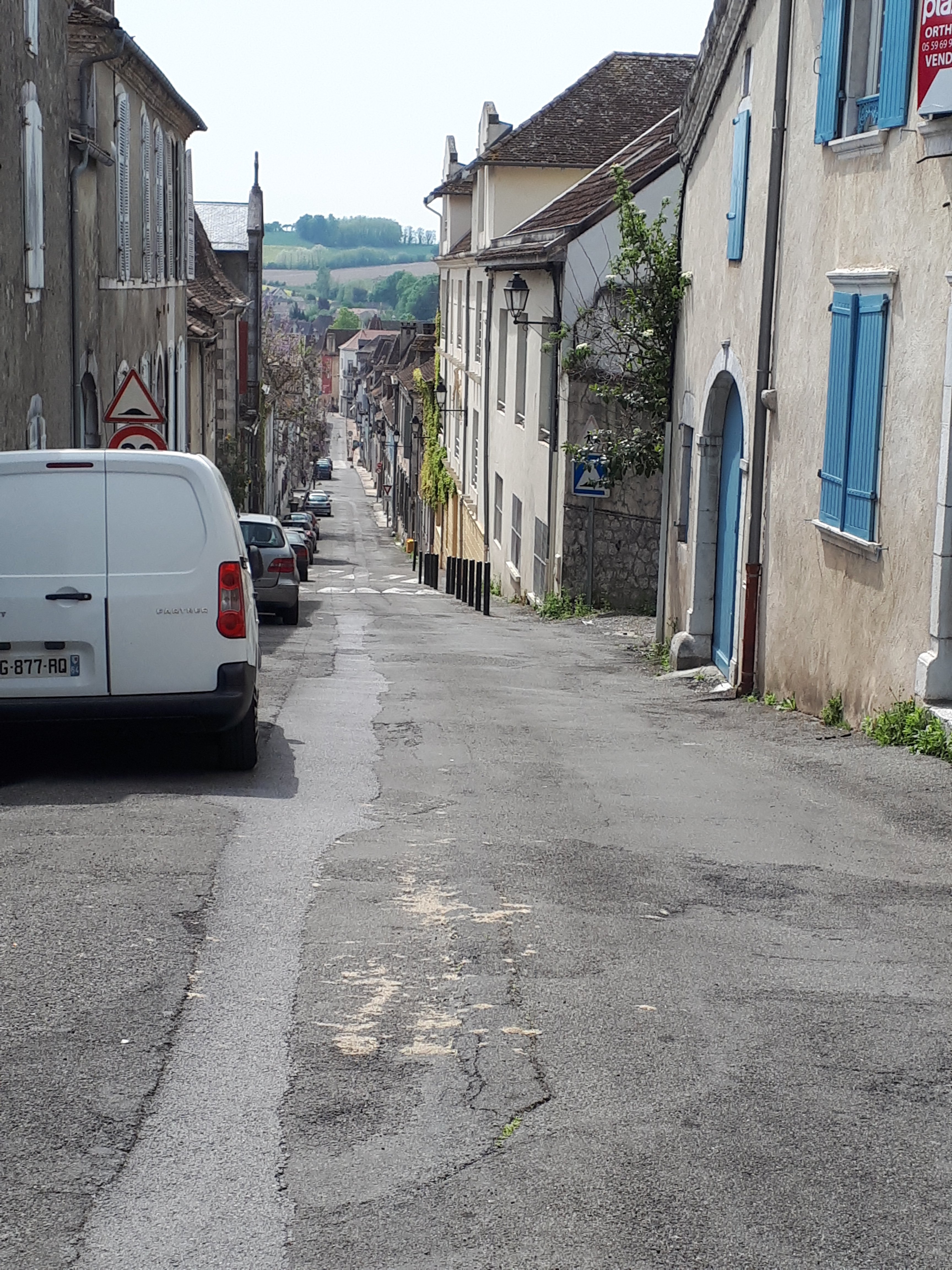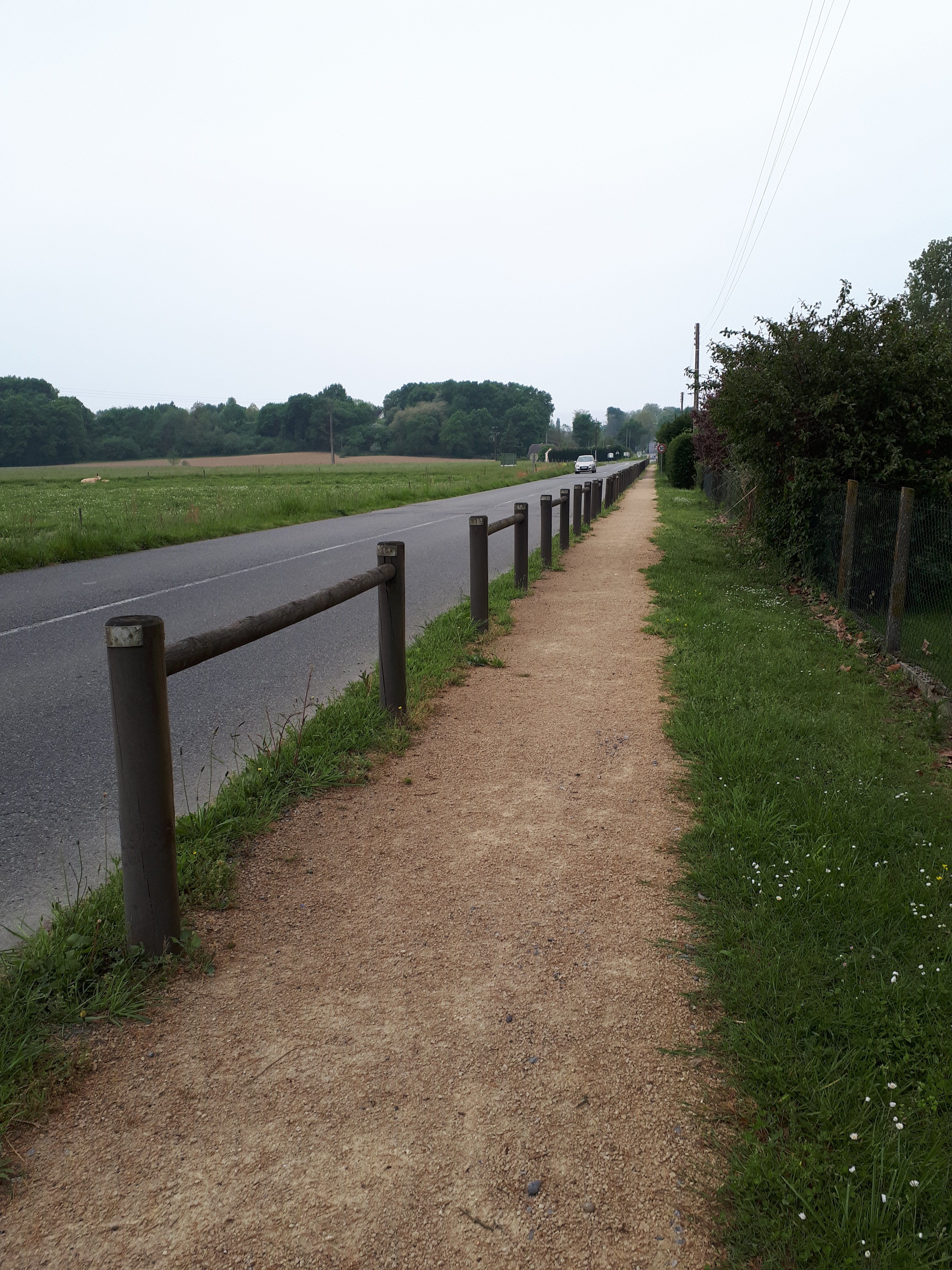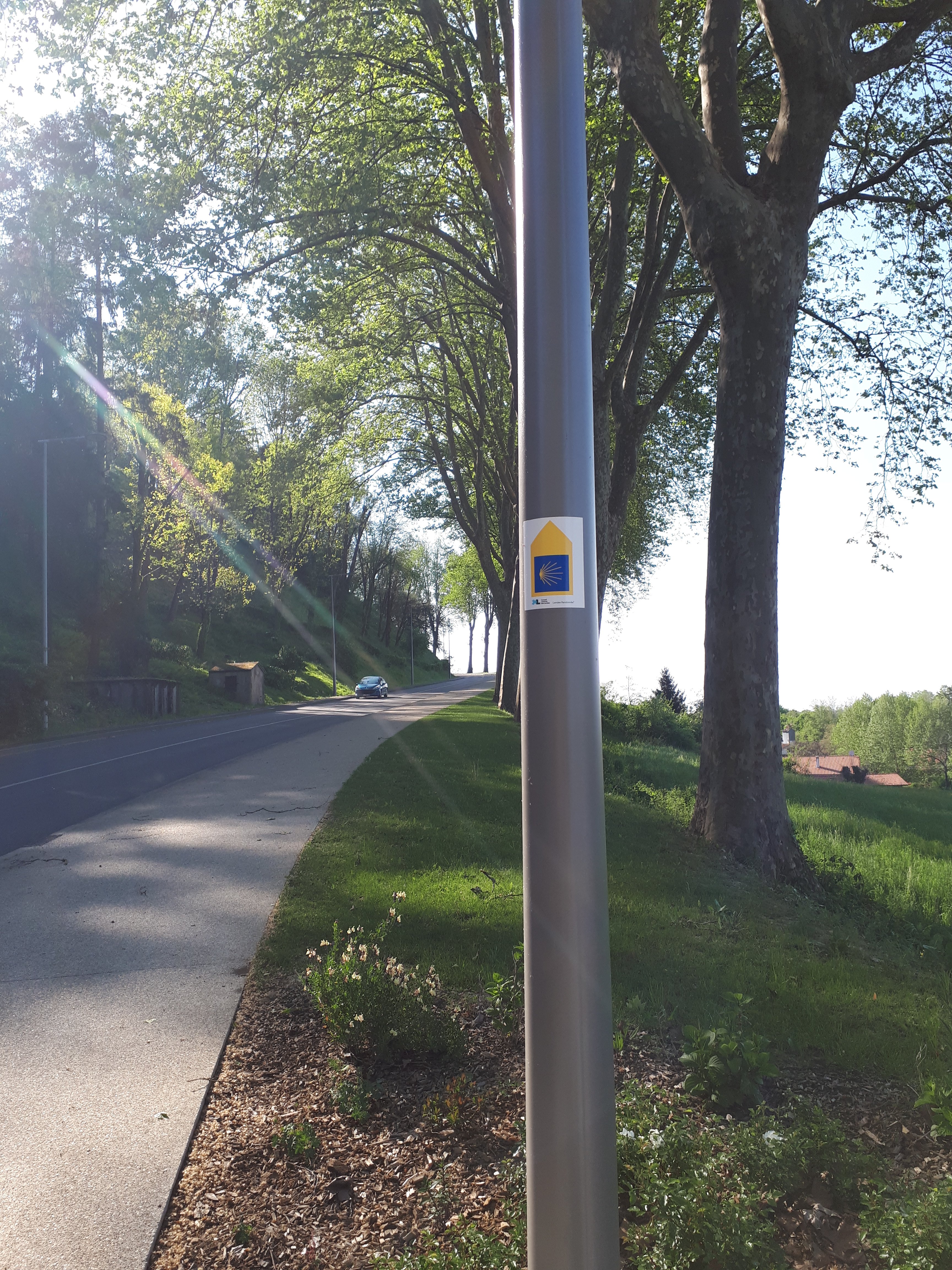 Er wordt in de streek wel iets meer rekening gehouden met wandelaars en stappende pelgrims langs de weg. De drukke departementale langswaar je het stadje moet verlaten is mooi afgezoomd. Een te volgen voorbeeld!