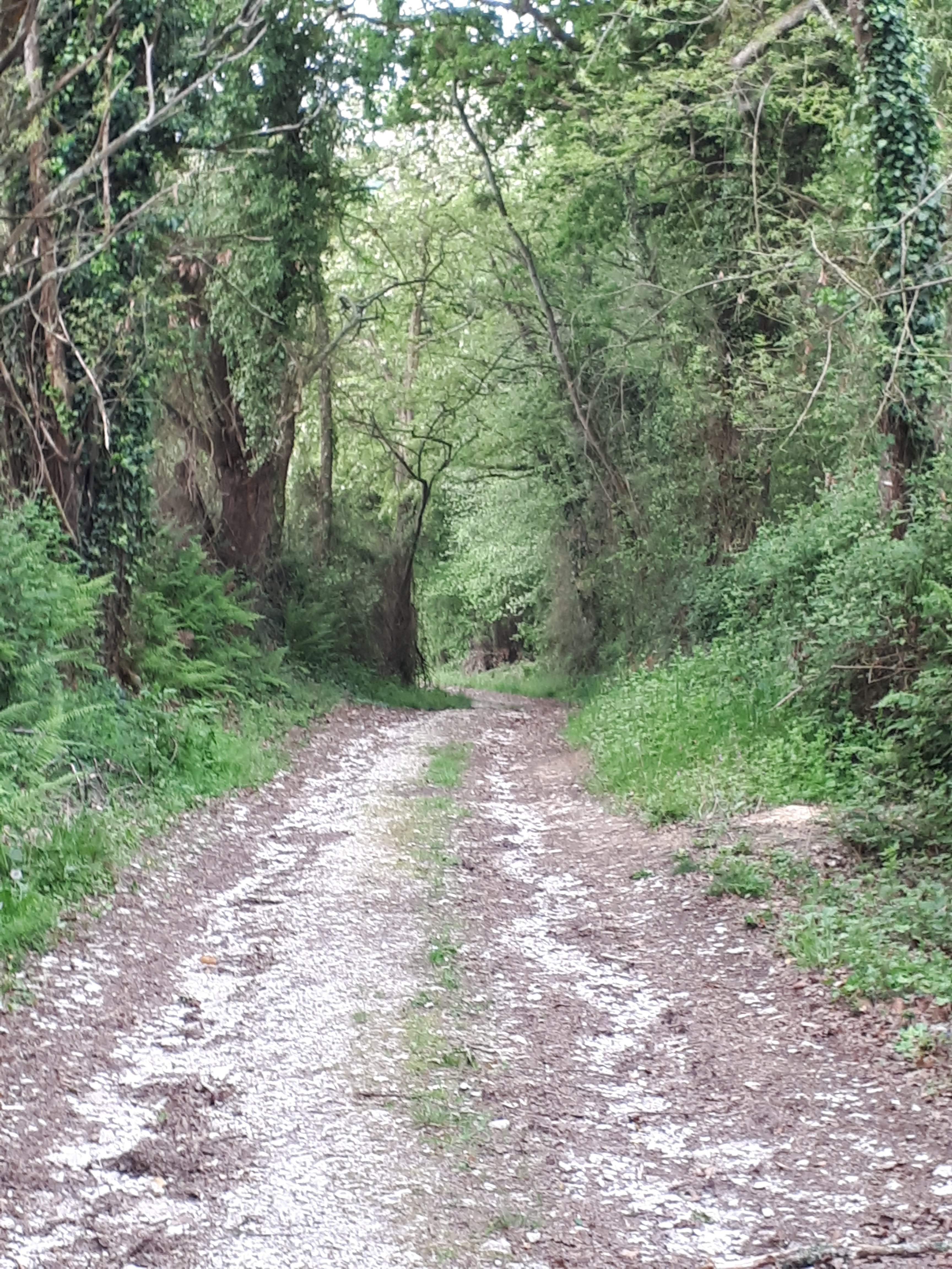 Deze paasdag begon nogal merkwaardig. Ik kwam in zekere zin ook de paasklok tegen. Op zoek naar een hap voor op de middag onderweg stapte ik naar een bakker. Ik ontmoette een man, die me meteen aansprak over de Camino. Hij was ook gestapt maat was nu naar Rome en Assisi gestapt. Vond dat formidabel samen met de vrienden. Dat het belangrijk is om een goede fles mee te nemen en dat het ergste wat kan gebeuren het verlies van de kurkentrekker. Ik volgde hem naar binnen bij de bakker. Toen ik wilde betalen voor mijn brood mocht ik niet want de mijnheer voor mij betaalde zei de verkoopster. Toen ik buitenstapte reed hij voorbij met de wagen, uitbundig zwaaiend.