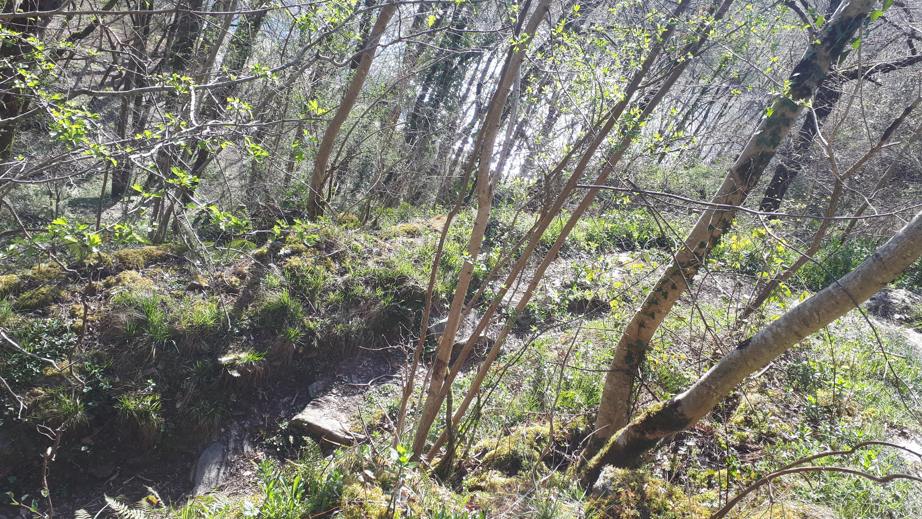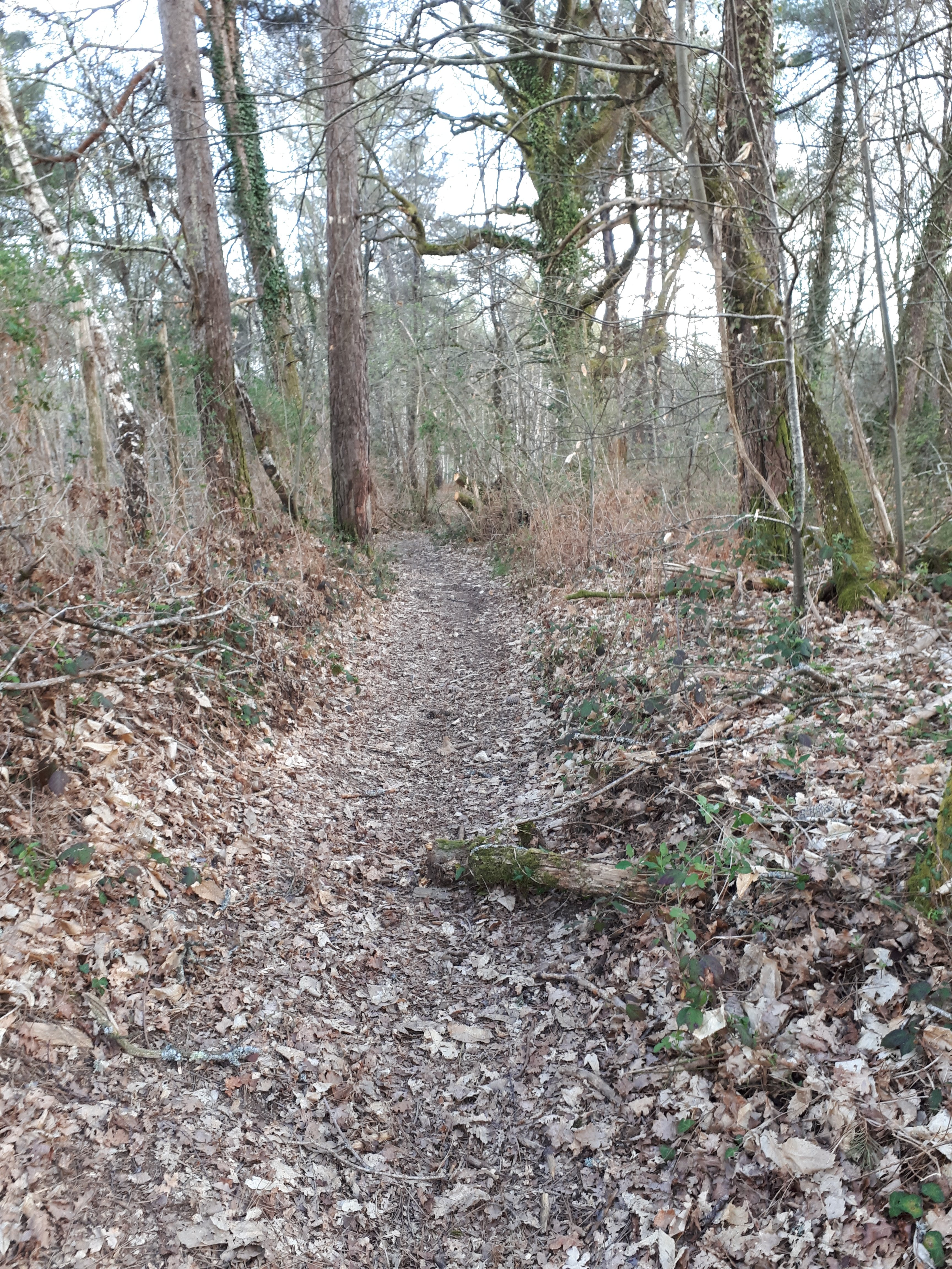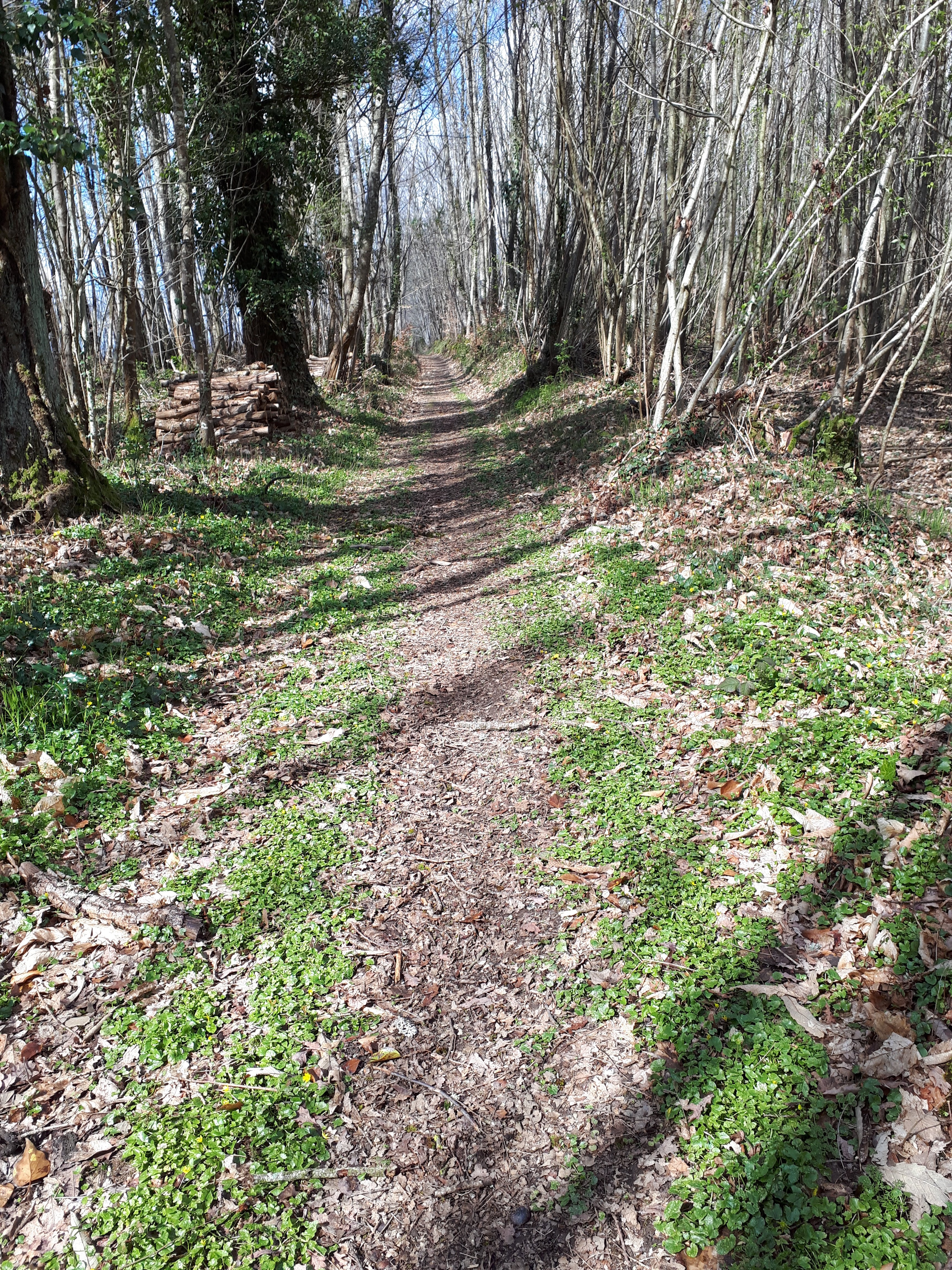 Een lange rechte lijn doorheen bossen. Zo een 14 kilometer lang. Zoals gemeld zijn enkel de bladeren van de narcissen aanwezig. De bloemen zijn er jammer genoeg niet meer.