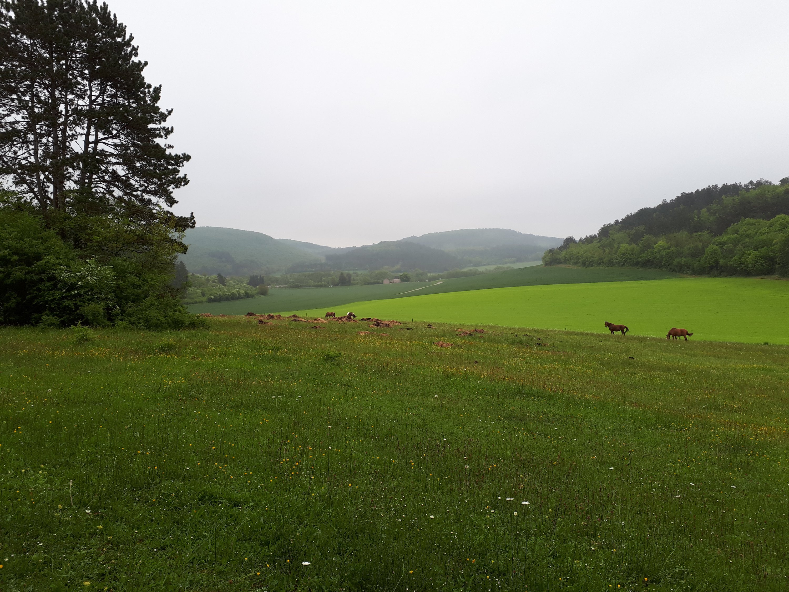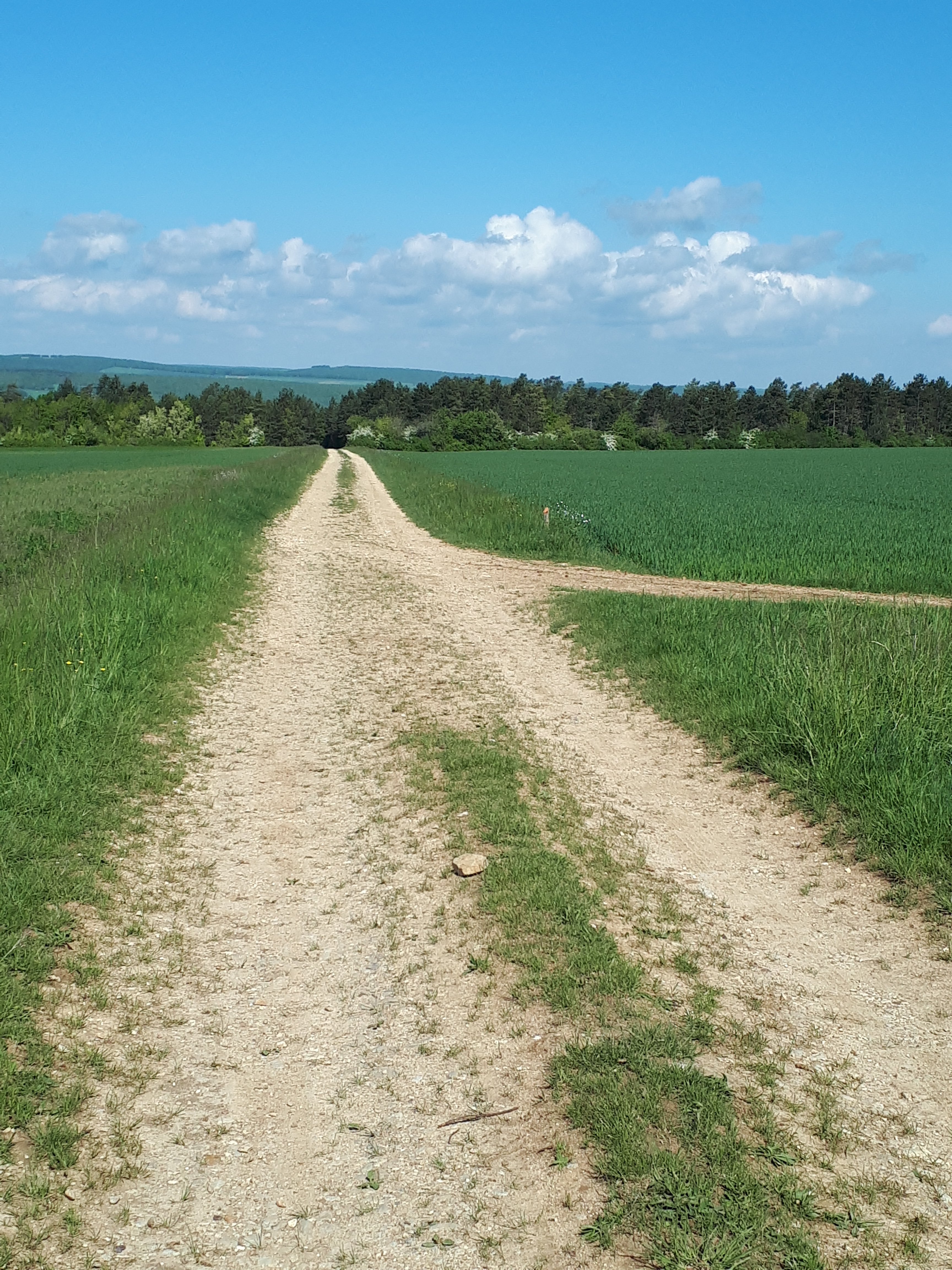 Het was een mooie wandelweg vandaag, althans de eerste 15 km. Mooie wandelpaden in bos of via de weiden. Lekker zacht voor de voetzolen.