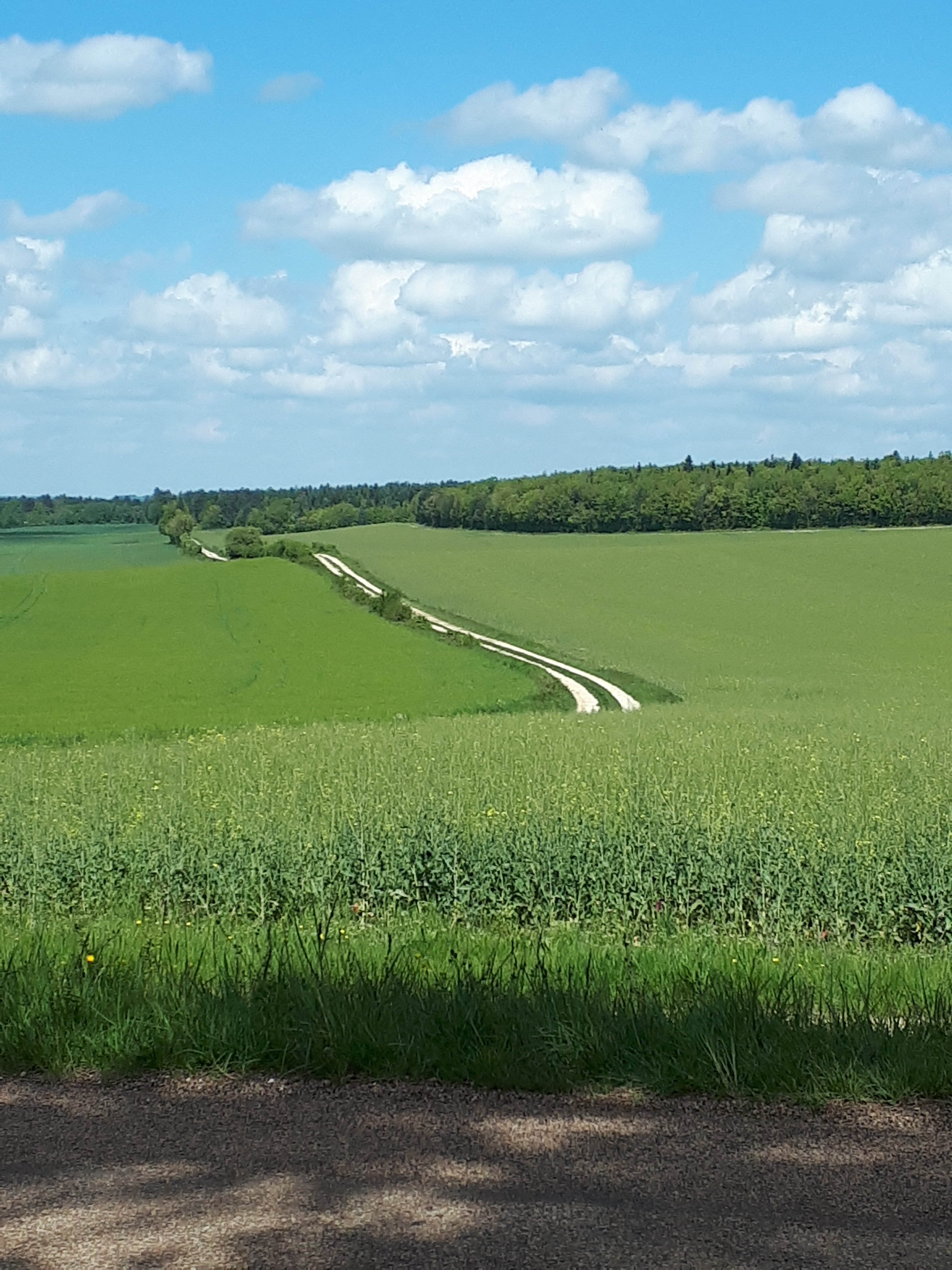 Na de croissant ging de to ht verder met wat dalen en veel klimmen. Afwisselend door bos en velden met vooral gerst en uitgebloeid koolzaad.