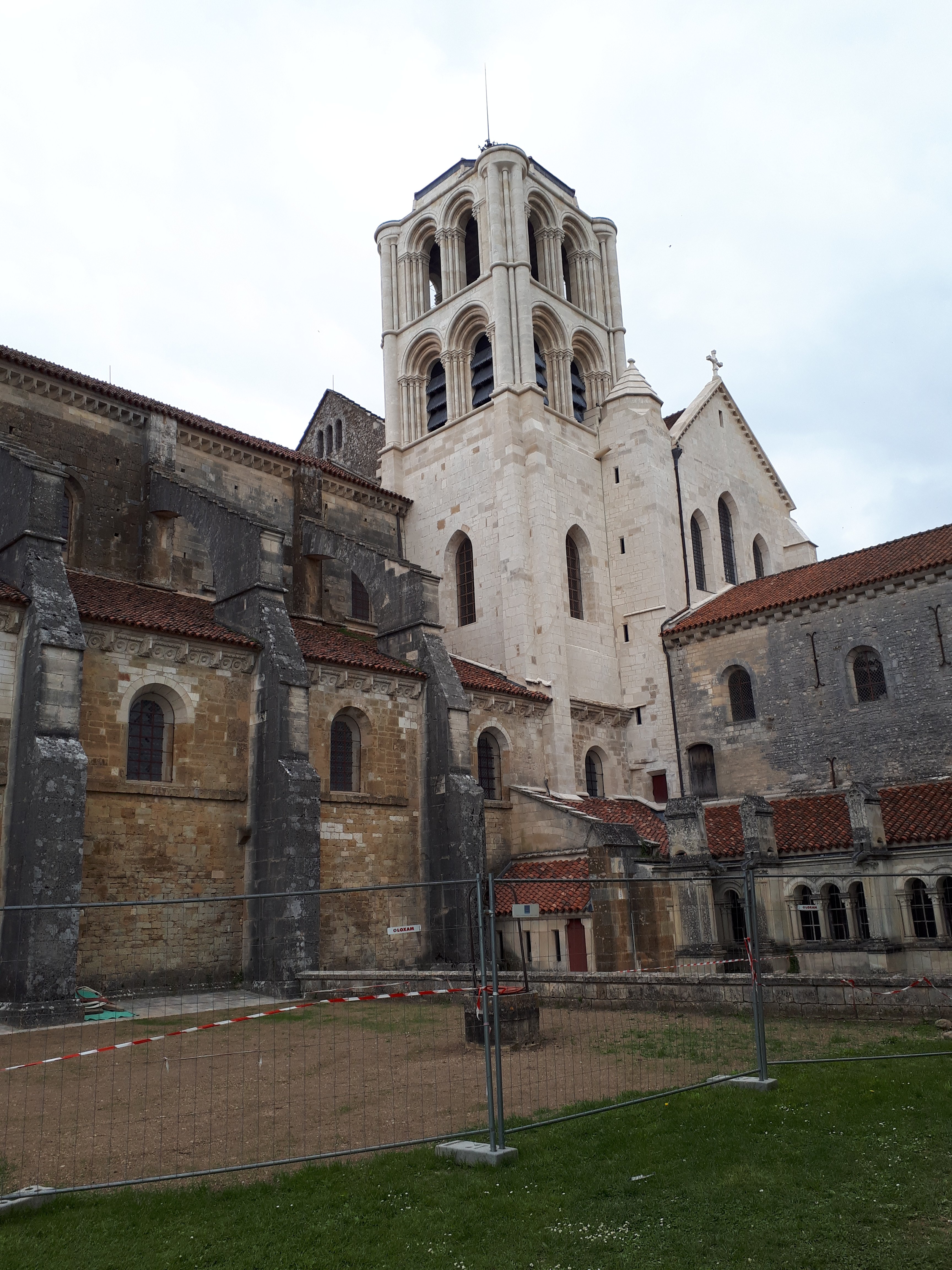 Omdat alles zo snel was afgehandeld ben ik eerst gaan eten met glaasje Vezelay witte wijn en dan terug om de kathedraal wat van dichter te bekijken. Zware restauratie aan de gang momenteel.