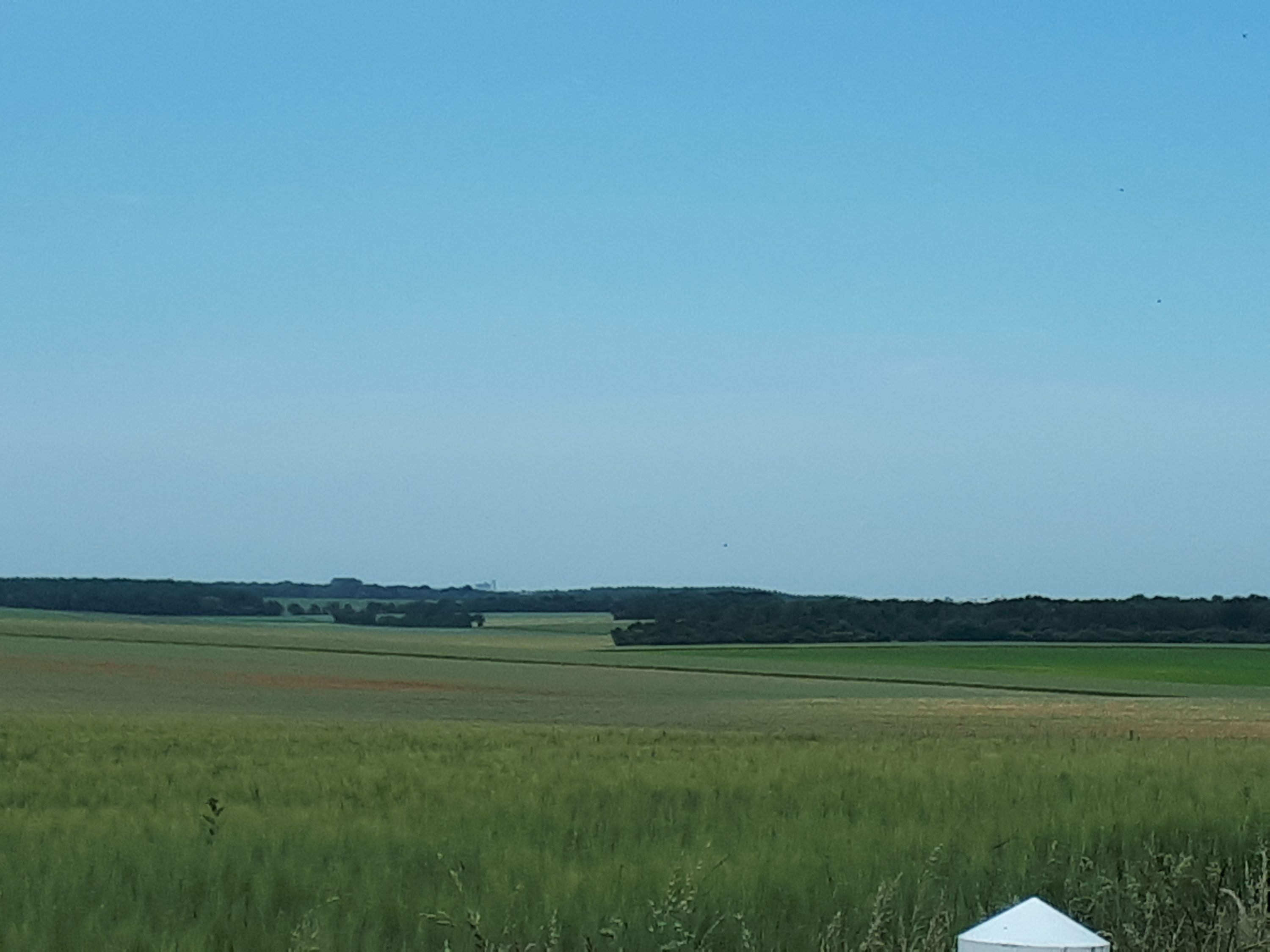 Bij het naderen van de stad was de departementale er terug. Vrij druk ook en eigenlijk weinig plaats voor het stappen. Ik probeerde achter de vangrail te stappen. De muisjes en hagedisjes sprongen voor me uit. Na een flink aantal kilometers en 2 ronde punten ging de weg door een oude kazerne van de logistieke eenheden. Die oude kazerne wordt momenteel omgebouwd tot logistiek centrum én scholencampus buiten de stad. Dan draaide de route even weg van Châteauroux om naar de ruïne van een cisterienser abdij te gaan. Op de velden daar nog een bos zien weg springen.