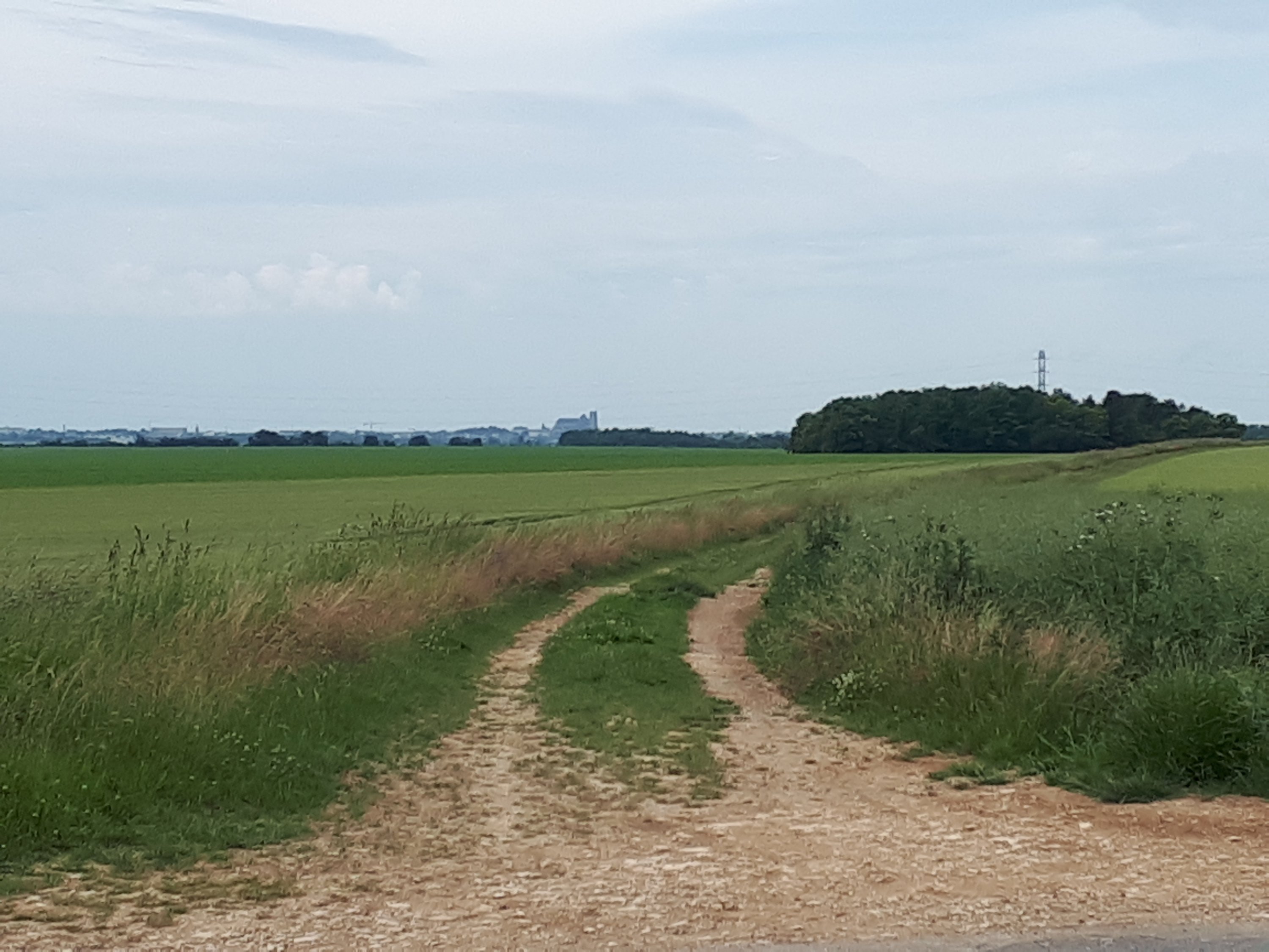 Rond de middag plots heel in de verte 2 vierkante torens. De kathedraal. Ik herinnerde me Reims nog. Het is niet omdat je de torens ziet dat je meteen aangekomen bent.