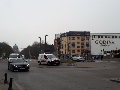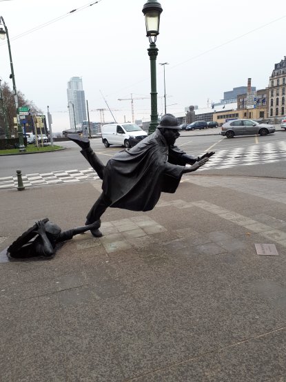 Wel zag ik bij het buitengaan van de kathedraal dat de pastorij er juist naast lag. Maar die was pas open om 14u. Dan maar eerst een sandwich ementhal jambon gaan eten. De patron had wel een originele manier gevonden om speciale Belgische bieren te tappen. 3 perfect drafts stonden naast elkaar voor Leffe, Hoegaerden enz.