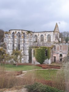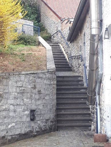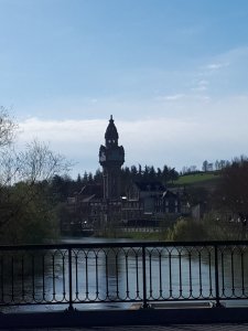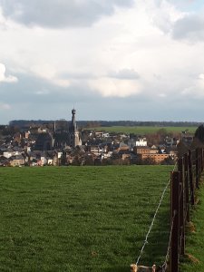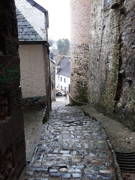 Neen. Geen trucage. Dat huis staat echt zo krom. Verderop nog een poging gedaan om het museum te bezoeken. Museum was dicht. Ik kon wel klooster enz bezoeken met de rugzak op de rug want vestiaire was er niet. En eerst moest ik de rugzak laten doorzoeken. Uit veiligheidsmaatregelen. Ik heb bedankt want ik had geen zin om alles uit en in te pakken. Na het spotten van een chocolade winkeltje met lekkere pralines naar het maisons des randoneurs voor inchecken.