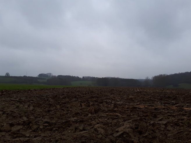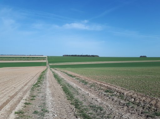 Eerst nog wat platteland met akkers en weiden en een laatste dorpje.