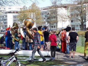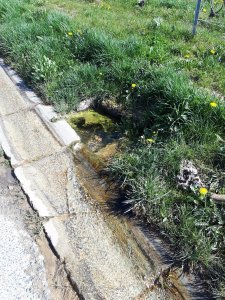 Mijn poncho had ik ondertussen aan want het was kil en nat. De weg daalde af tussen de huizen met hier en daar wat winkels en handelszaken. Zelfs een vioolbouwer gezien. Veel was er wel niet open op deze 30 april, vooravond van 1 mei.