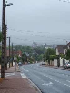 De temperaturen zijn vannacht flink gezakt. Het is amper 10 graden als ik het hotel verlaat. En de wolken die voorbij zoeven zijn zo grijs dat er wel nattigheid van moet komen. Ik ga eerst van het hotel terug naar de Compostella route en dan naar Auxerre. Afstand is beperkt vandaag.