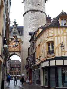 Het stadscentrum is vrij beperkt qua oppervlakte. Veel kleine smalle straatjes en nog veel huisjes in plak en stak. De tour de l’horloge moet wat opgelapt worden. Iemand is met de wijzers gaan lopen.