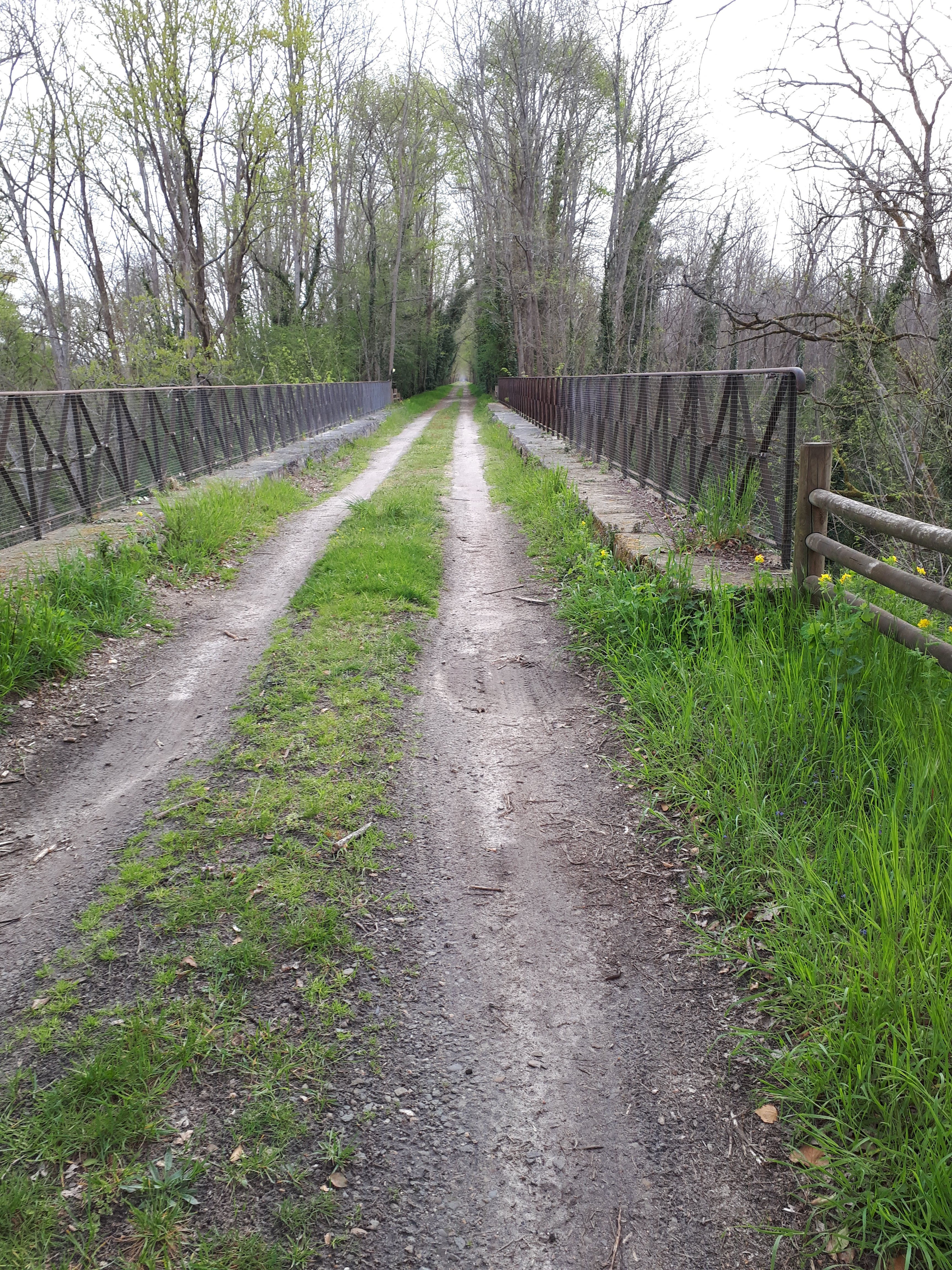 Het begint bij de eerste bocht. Ik ben meteen omringd door pelgrims. Twee heren, die me aan stevig tempo voorbij stappen, daarna steek ik 2 oudere Duits pratende dames voorbij en wat verderop komt er nog een pelgrim uit het groen. Zoveel heb ik er over de ganse tocht niet gezien.