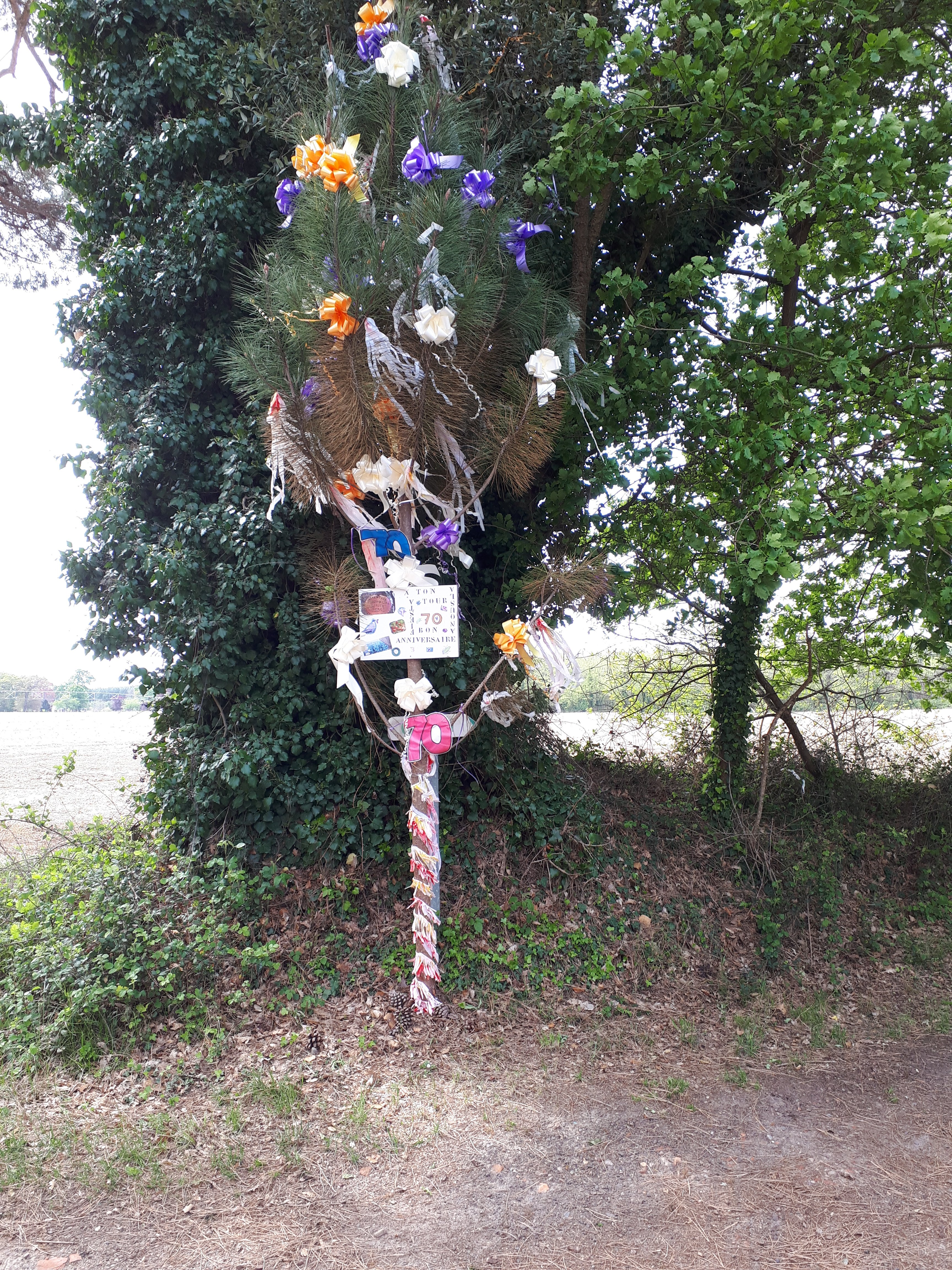 Wat verderop ontmoet ik een andere pelgrim die vanuit Brest de Atlantische route heeft gevolgd. En ondertussen stapt iedereen op eigen ritme verder. Rond de middag zie ik een bende van 8 langs de weg picnicken.