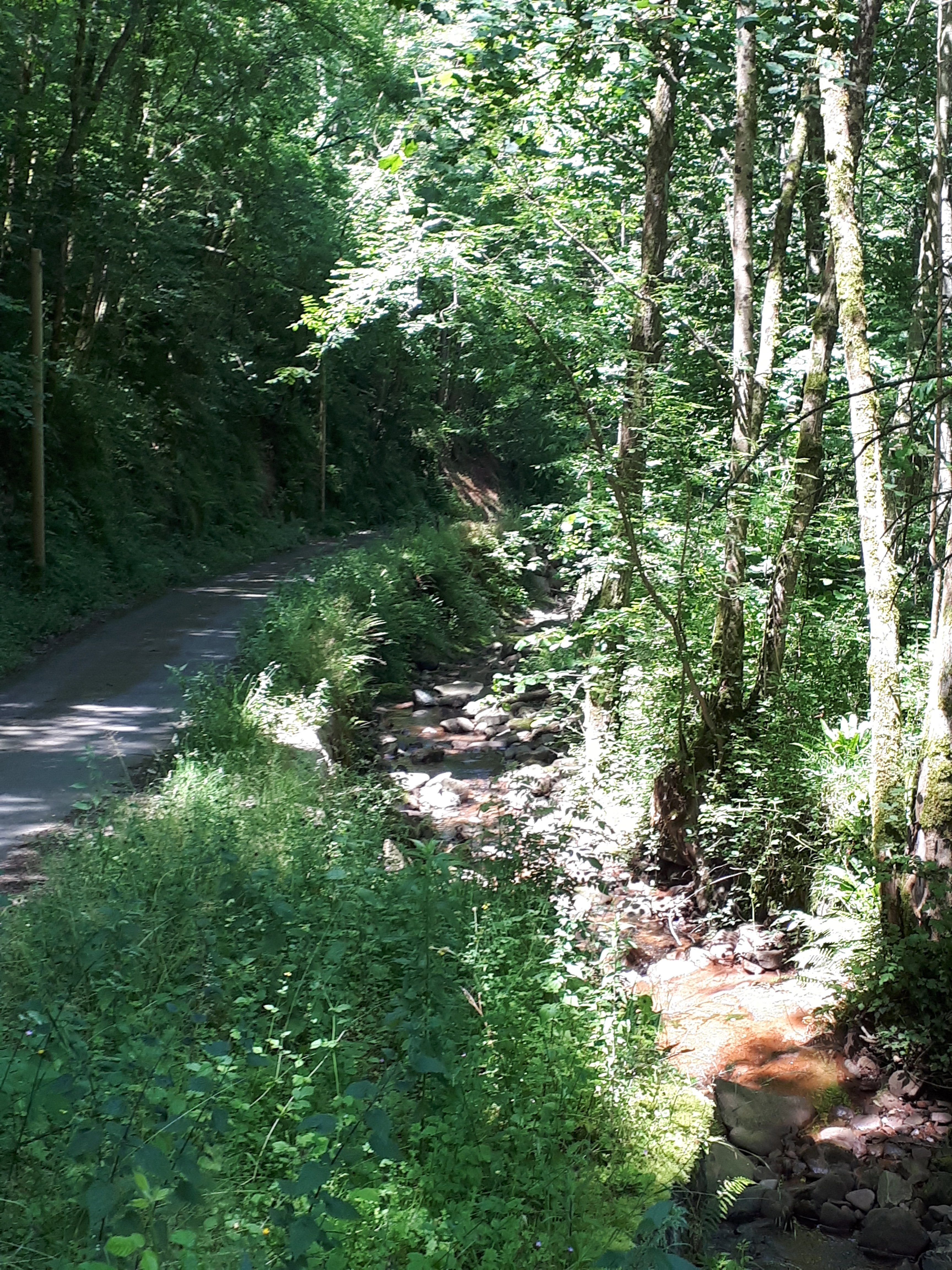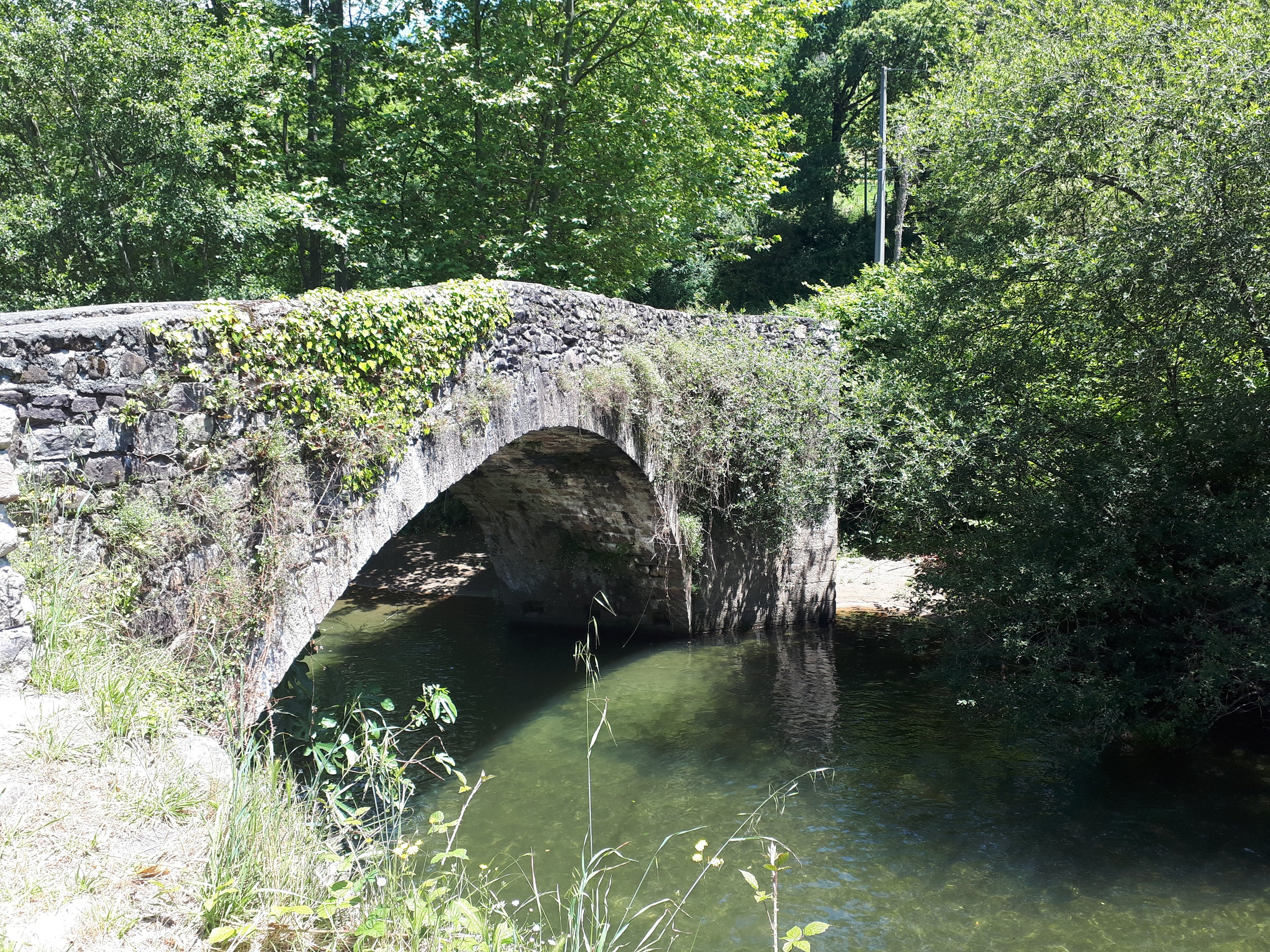 Naar beneden ging eerst de tocht. Naar het groen en naar een riviertje. Een oude middeleeuwse brug bracht me naar de overkant. Alleen jammer voor de brug want op haar oude dag was er een stuk uitgereden. Dat wordt herstellen.