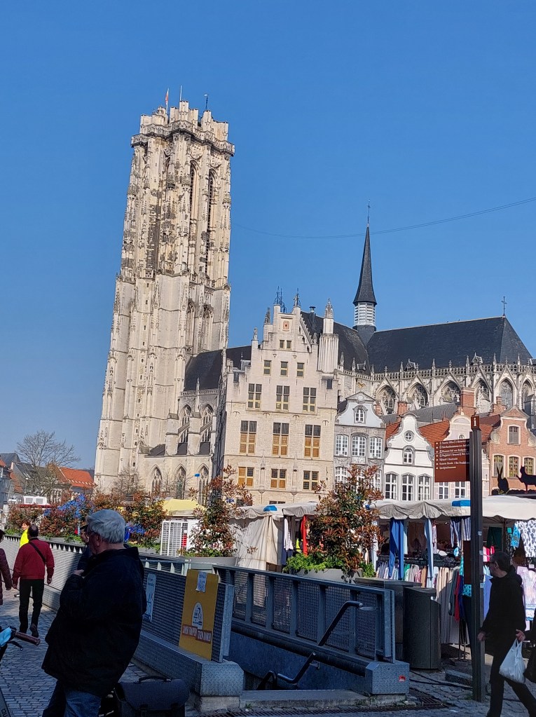 Na een kleine kilometer trof me het mooie kleurenspel door de zon op de kerk en de kerktoren.