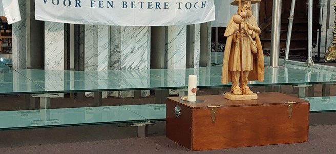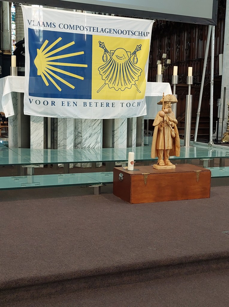 Vanmorgen goed vroeg vertrokken. De voorspelde regenbuien bleven uit. Eerst trok de Camino door het groene heuvelachtige land. Een beeld van San Miguel die er in de zon veel aantrekkelijker uitziet dan gisteren in de regen.