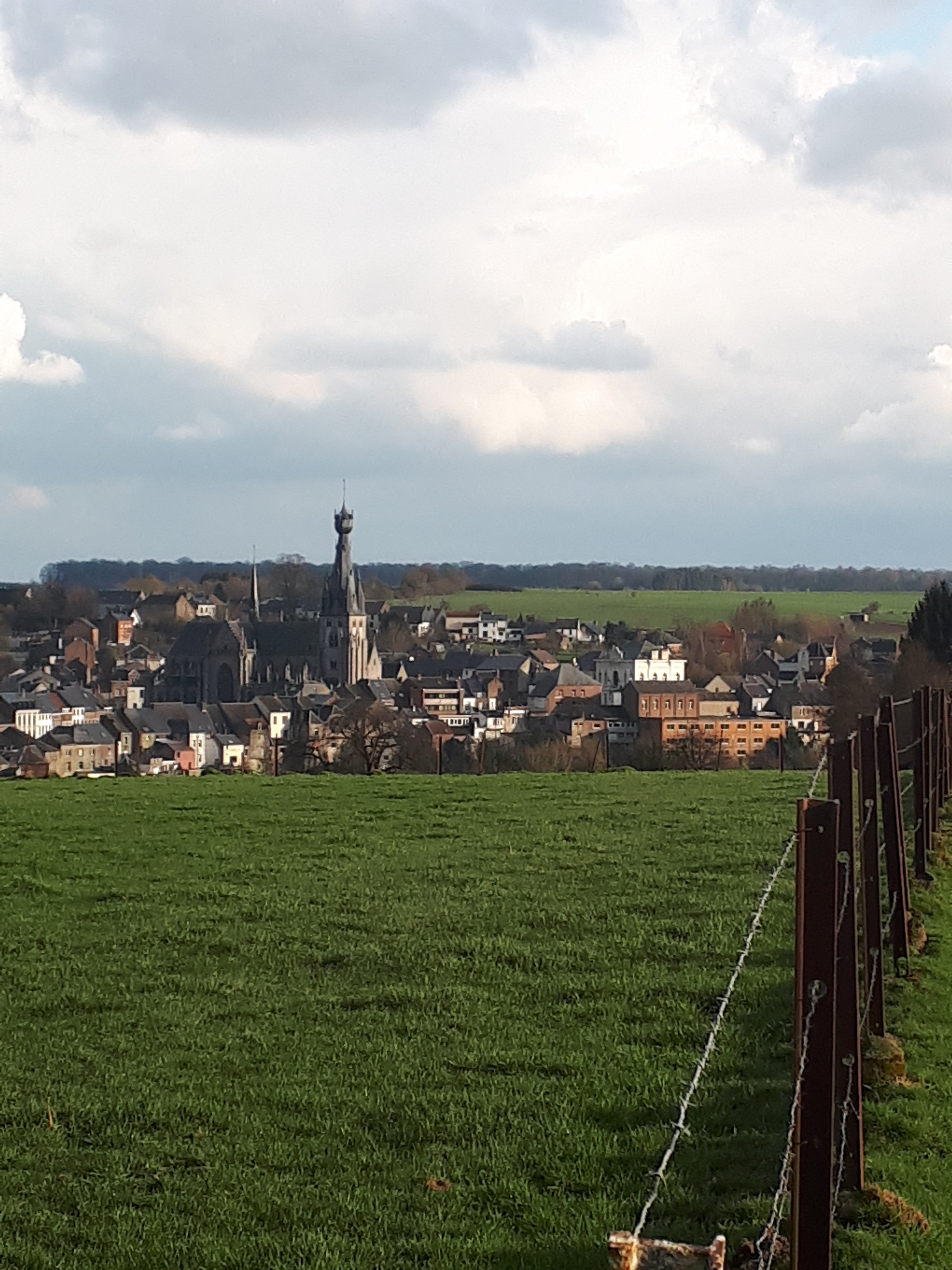 Gewoonlijk loop je in de loop van de dag wel door een dorp of stadje, maar vandaag niets van dat. Enkel bomen, bos, velden en weiden met op het hoogste punt als hoogtepunt deze windmolens.