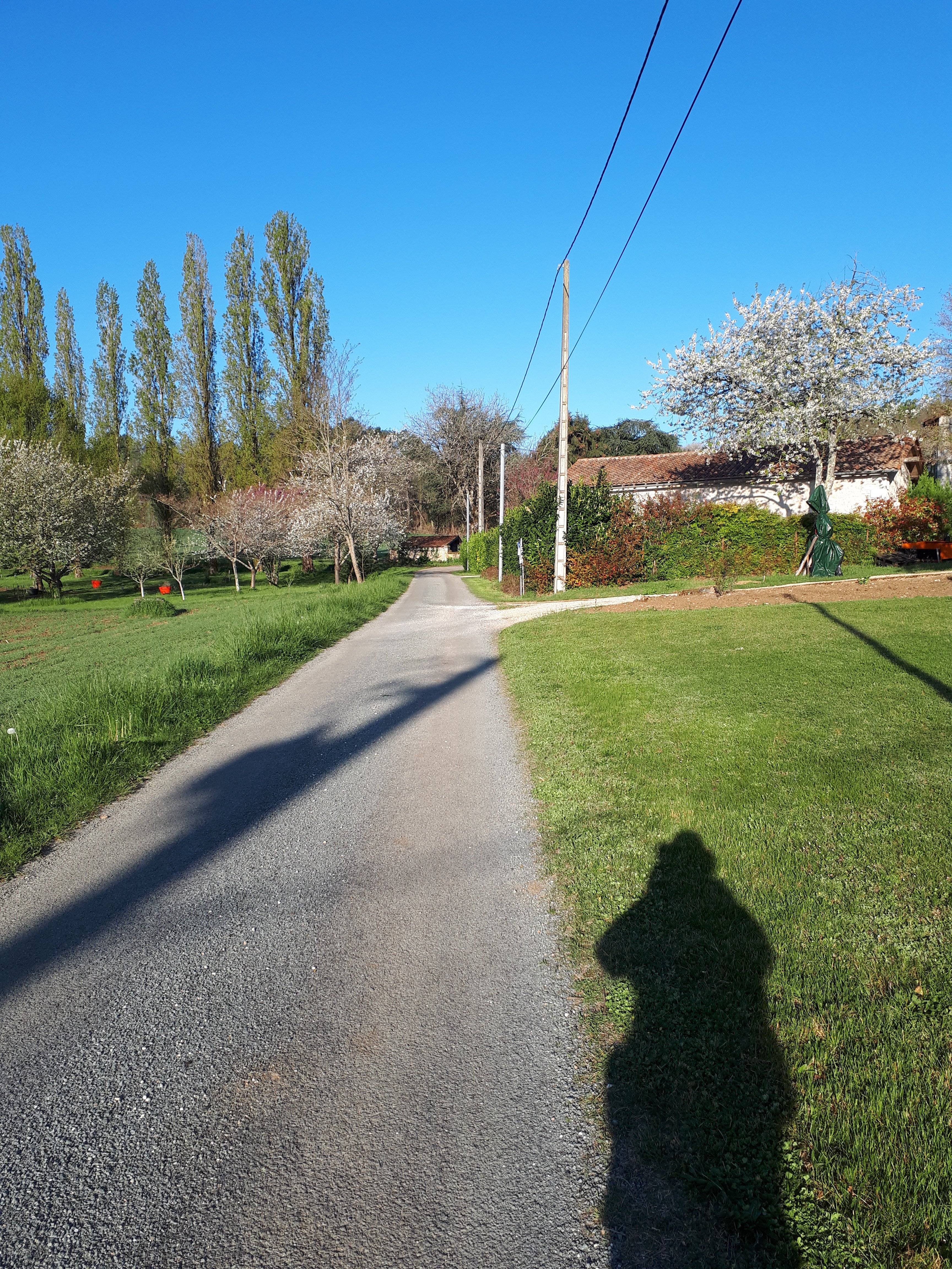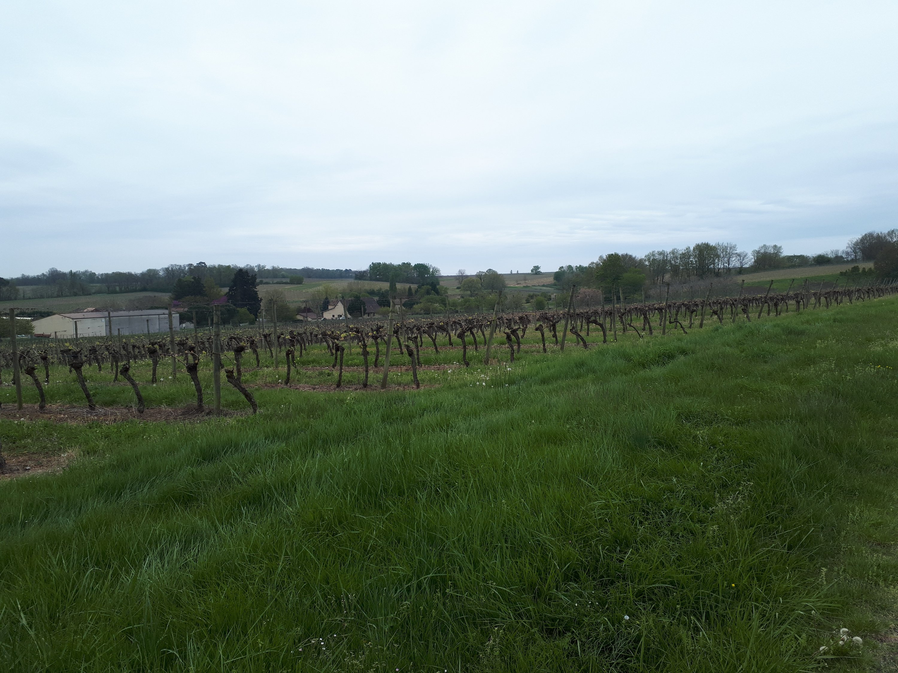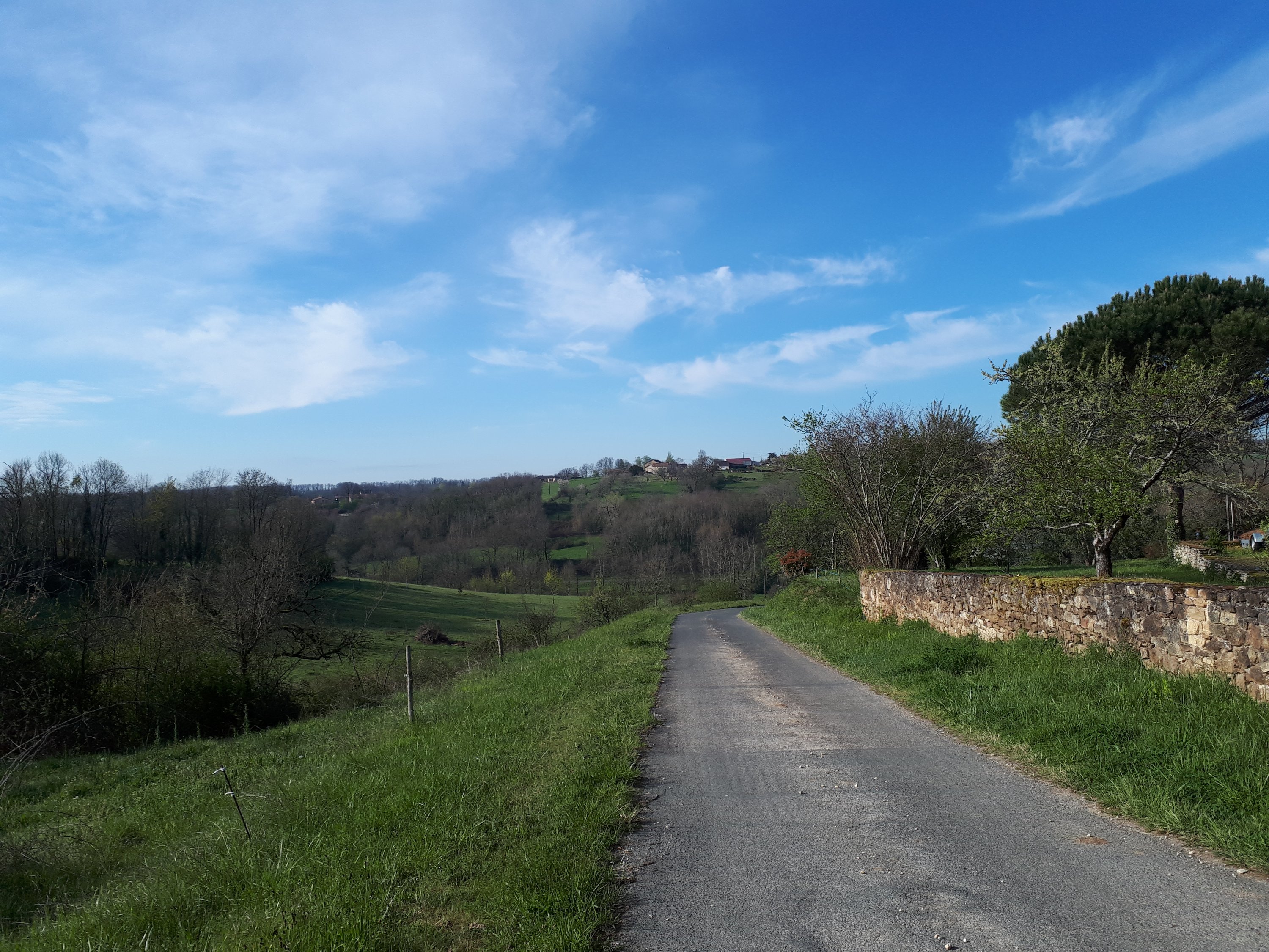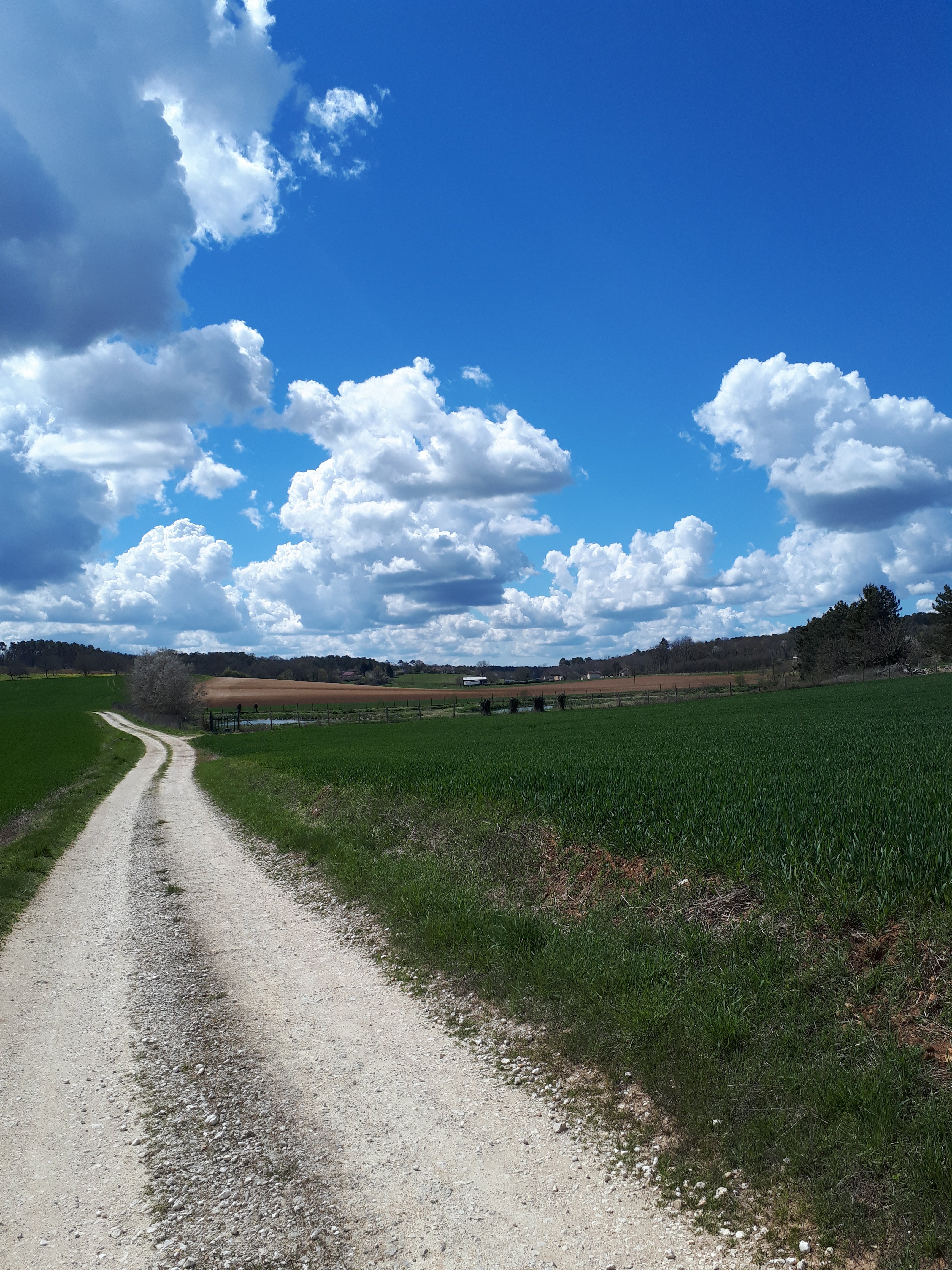 Zo is de dag eigenlijk verlopen. Eerst boodschappen gedaan want de gite communal had verwittigd dat op zondagavond niks te krijgen is in Pellegrue. De Dordogne verlaten en langs een lange saaie departementale eerst 4 km moeten stappen vooraleer de route omhoog de wijngaarden in trok.