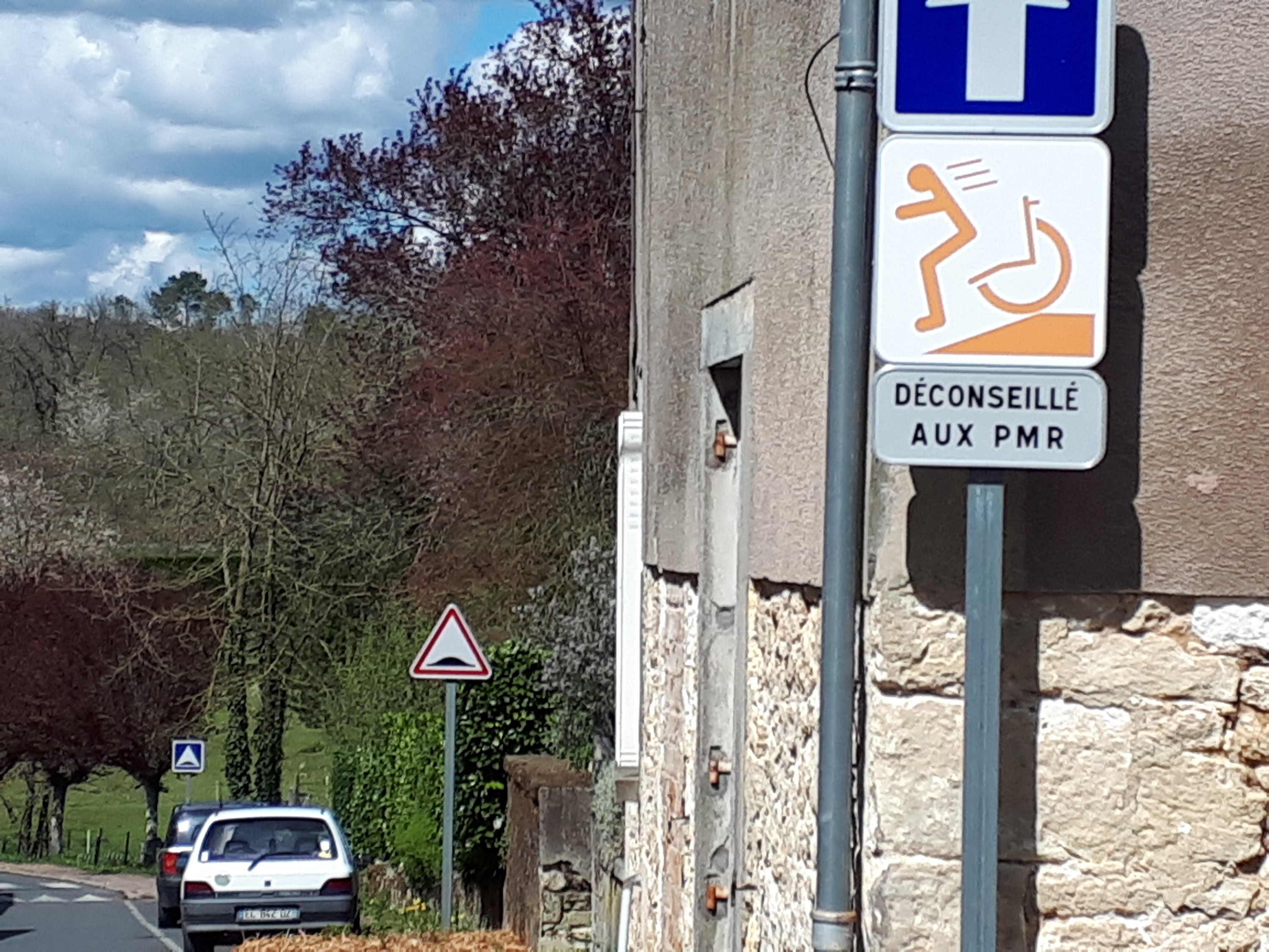 Eigenlijk slechts één dropje gezien onderweg. Negrondes en dat was zo dood als een pier. Om 13u, toen ik langsstapte was ook de bakker dicht. Wel onderstaand nieuw verkeersbord leren kennen daar.