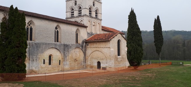 De abdij van Chancelade. Ernaast was een kleine kapel waar ik met mijn rugzak aan bijna niet binnen geraakte.