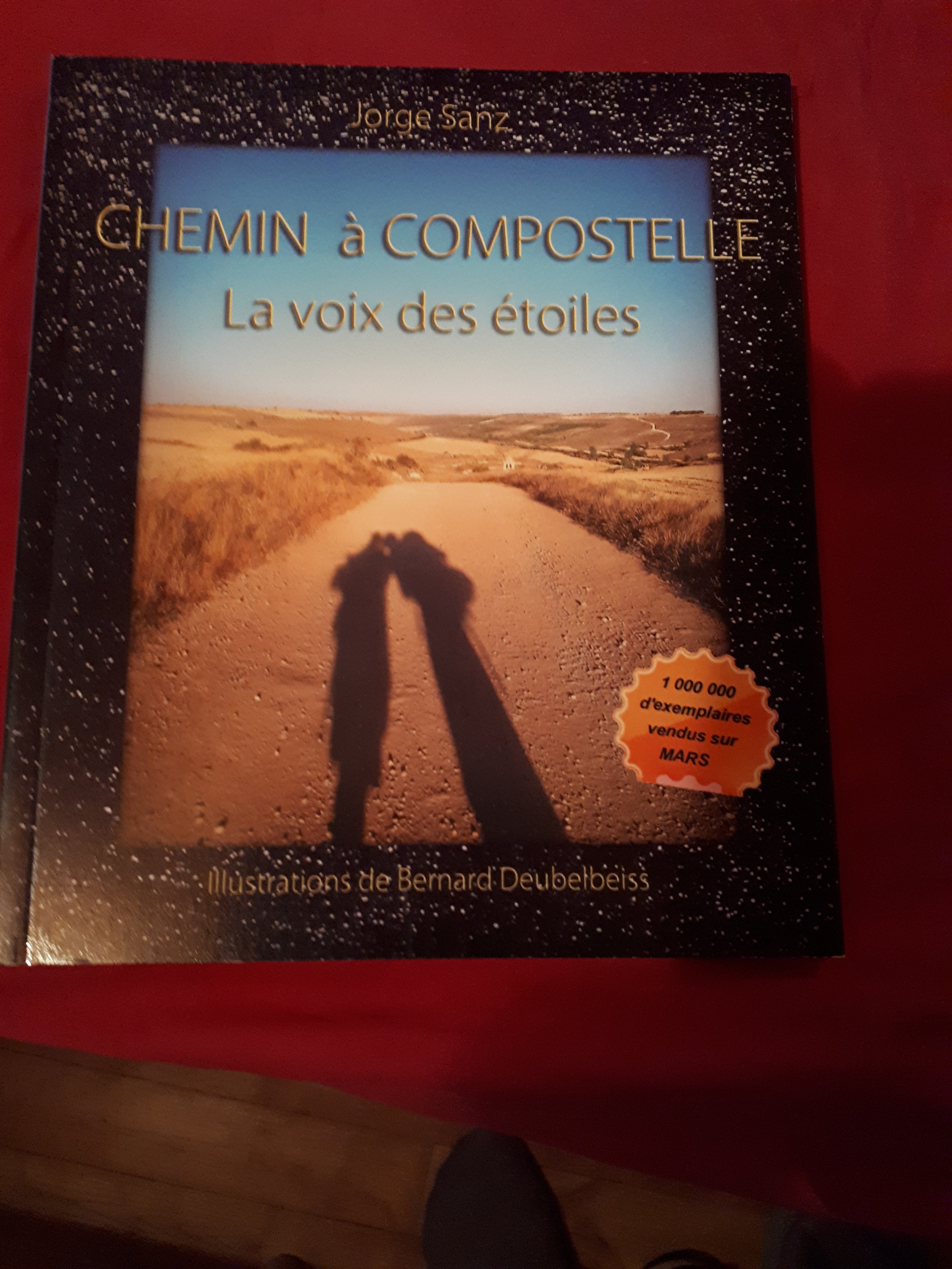 En zo ben ik ’s morgens nog maar pas vertrokken in Perigeux of daar kwam de eerste ontmoeting al. Ik werd geroepen door een man. Of ik de Saint-Jacques deed, waar ik vandaan kwam, dat hij ook gestapt had, dat zijn nazm Jorge was, enz, enz… ik wou verder stappen, mazr hij liet me niet gaan. Ik moest een geschenk aanvaarden van hem en zo kreeg ik het boek dat hij over zijn Camino heeft geschreven en hij schreef er zelf npg een boodschap in voor mij.