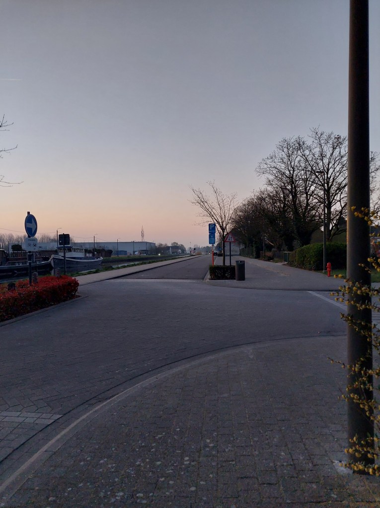Vroeg in de ochtend deze maandag de rugzak nog even gecontroleerd en over de schouder gegooid. Om 7u stipt stapte ik het huis uit richting station. Het was nog rustig. Lichte nevel hing over de vaart.