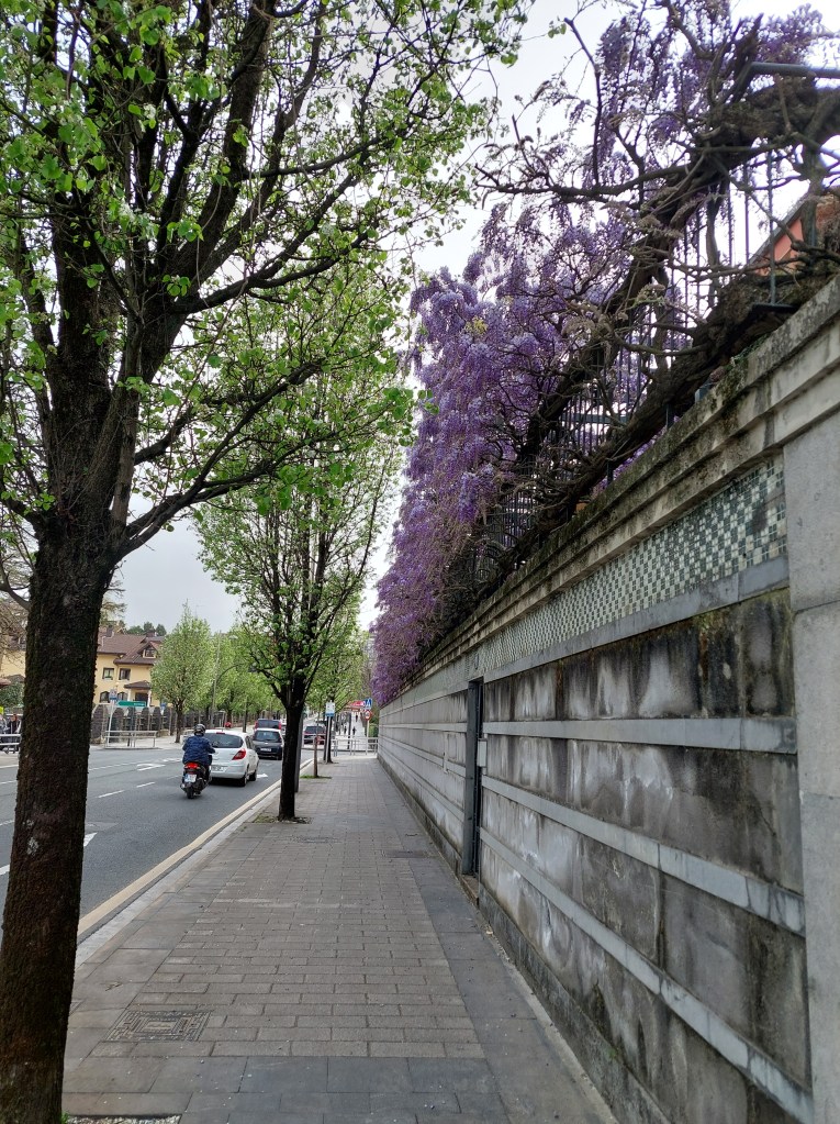 Het is toch weer wennen aan de kaart en vooral de schaal ervan. Eenmaal de brug over was het toch wat zoeken naar het begin van de route. Ik was niet alleen. Een koppel op de fiets was ook afgestapt om de kaart goed te bestuderen. Hun route liep rond het stadscentrum. Ik moest doorheen het centrum langs drukke straten. Maar dat kon het lentegevoel niet drukken, zeker niet toen een bekende bloemengeur mijn neus kriebelde.