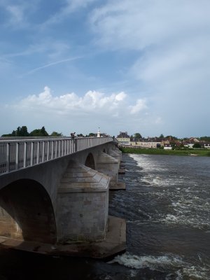 De route slingerde naar beneden, naar een stuwmeer en de Pont du Dognon. Daar over het meer en meteen naar boven langsheen een bospad. De brug was wel herkenbaar
